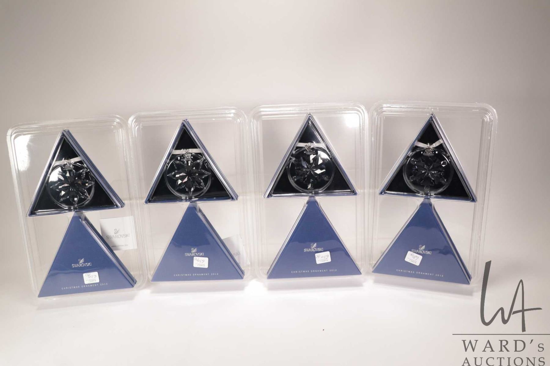Four new in package Swarovski crystal Christmas ornaments including two 2012 and two 2013