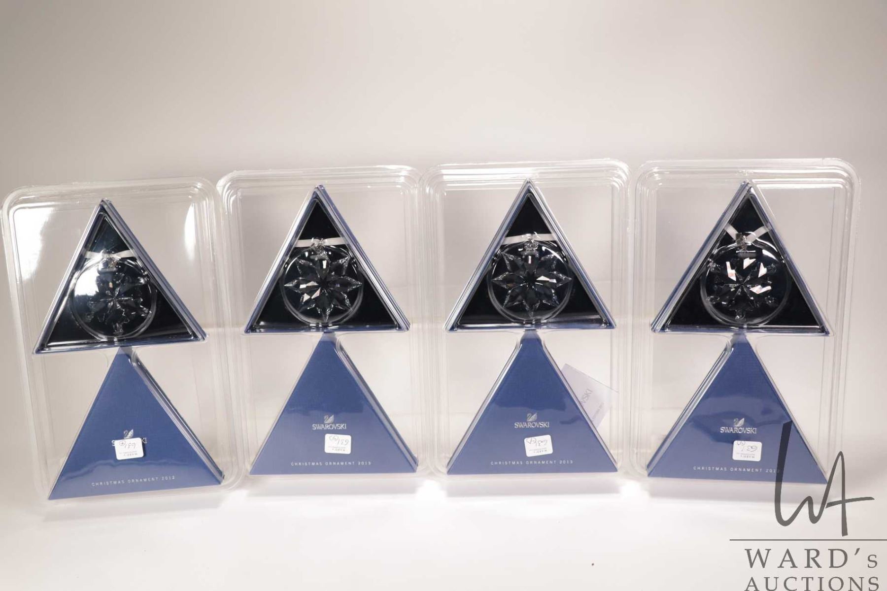 Four new in package Swarovski crystal Christmas ornaments including two 2012 and two 2013