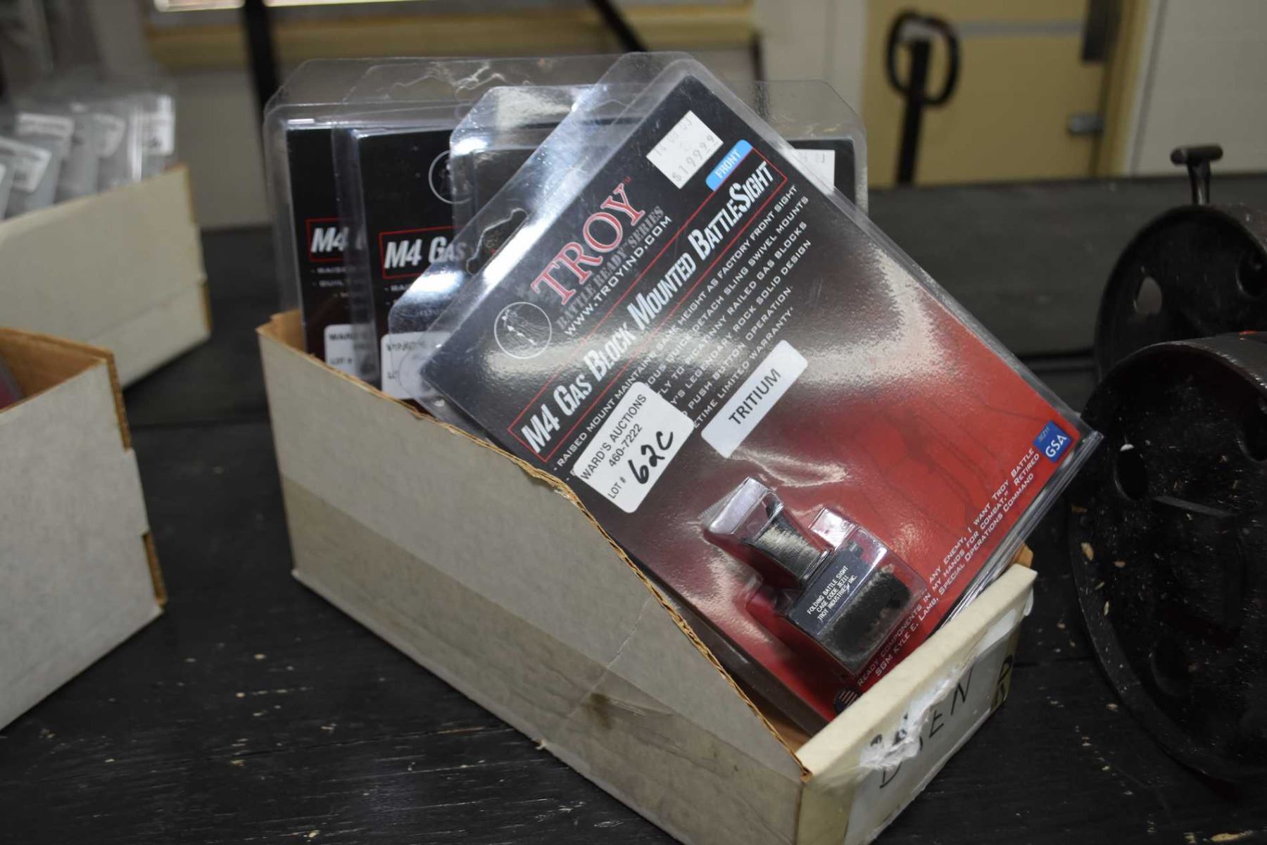 Four new in packaging battle sights Four new in packaging Troy brand M4 gas block mounted front battle sights, black in colour