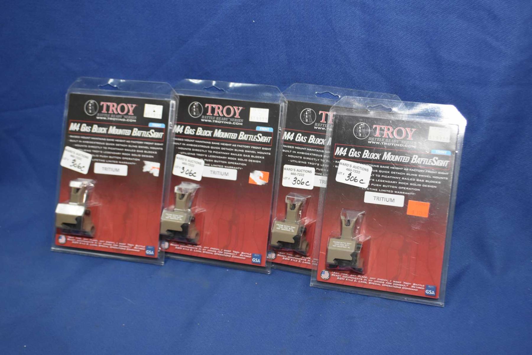 Four new in packaging battle sights Four new in packaging Troy brand M4 gas block mounted front battle sights, green in colour