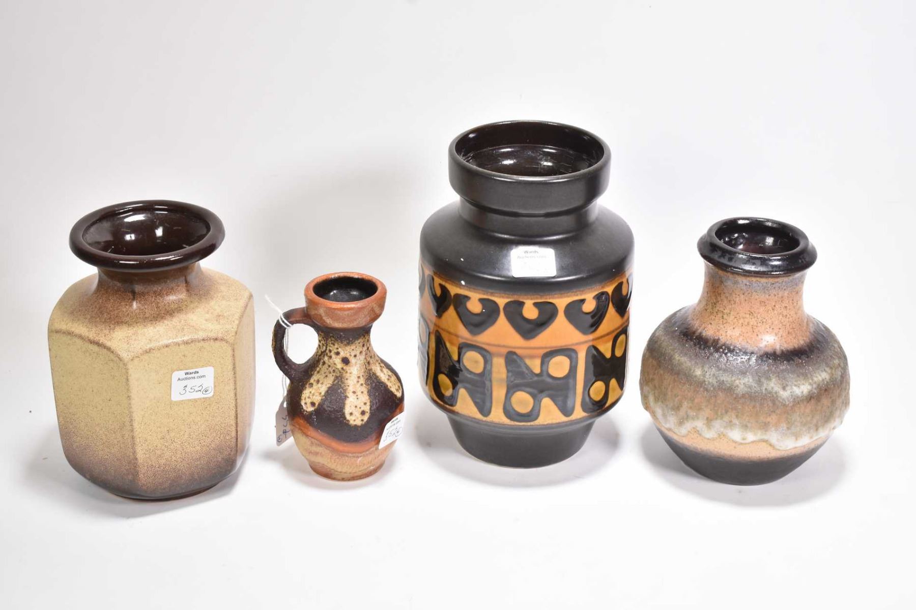 Four pieces of mid century modern German pottery ranging 5"-8"