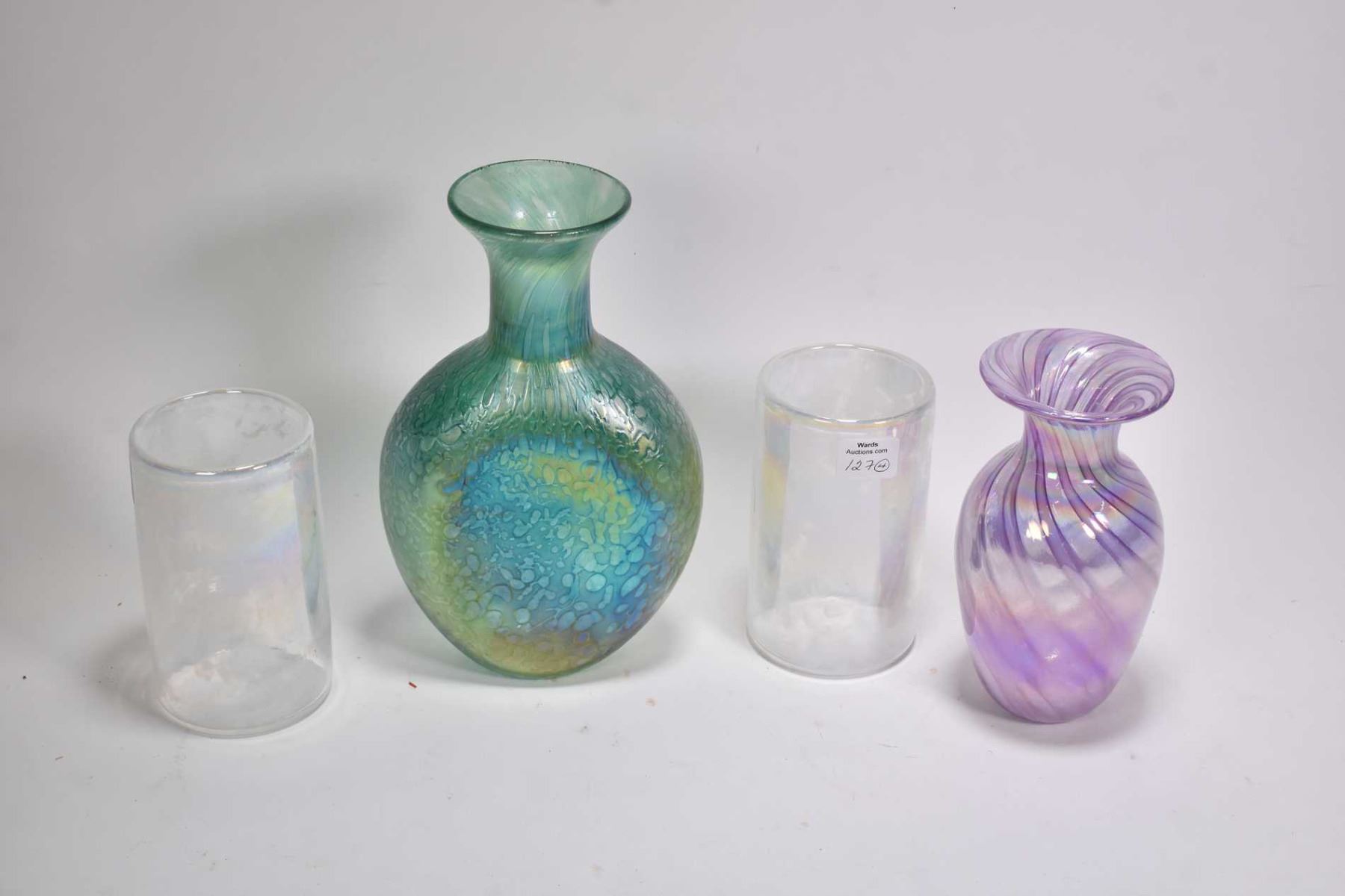 Four pieces of signed art glass included cased, iridescent ranging from 5"-8 1/2"