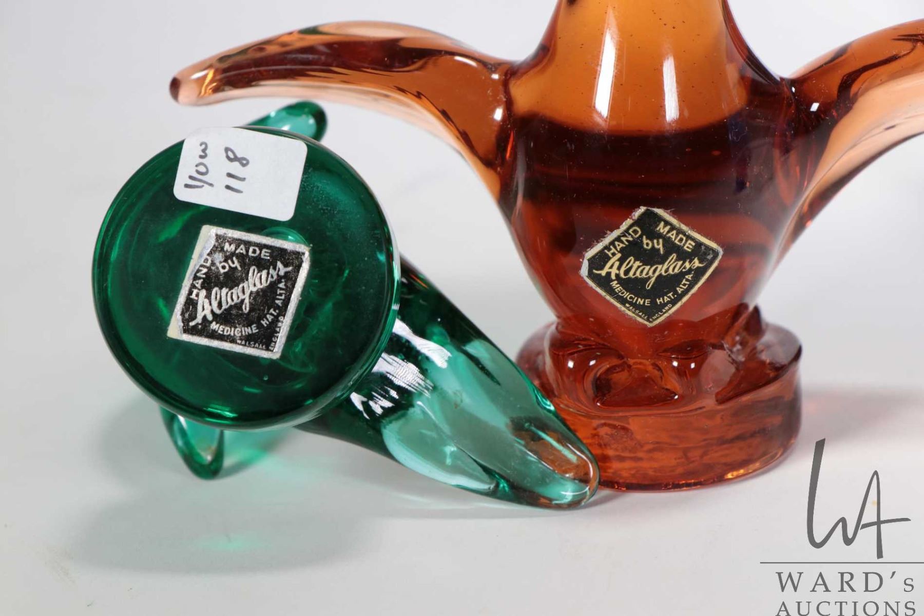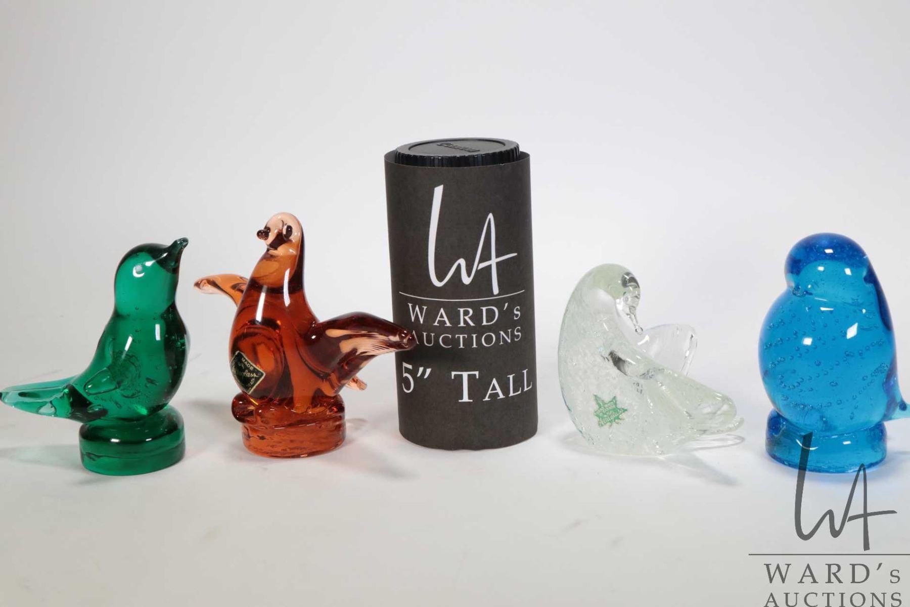 Four pieces of vintage Alta glass, all birds including 4 1/2" amberine duck
