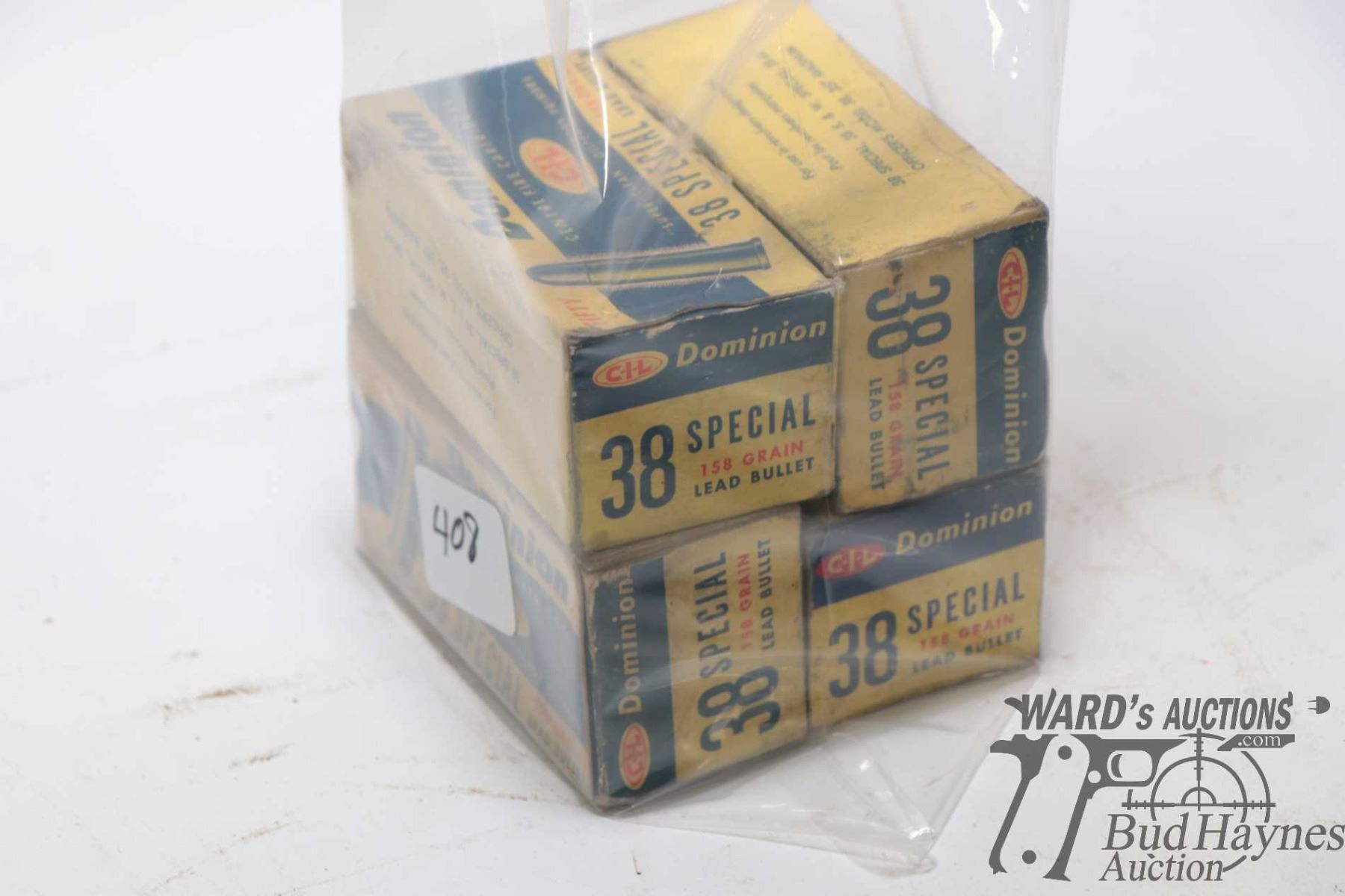 Four vintage 50 count boxes of Dominion .38 Special, including two boxes full with reloads, one full