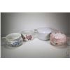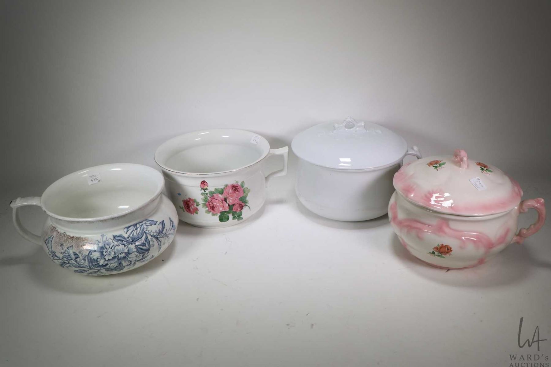 Four vintage commodes including Wilkinson Ltd. England ironstone with lid, a Tunstall English commode etc. Note: Not available for shipping. Local pickup only