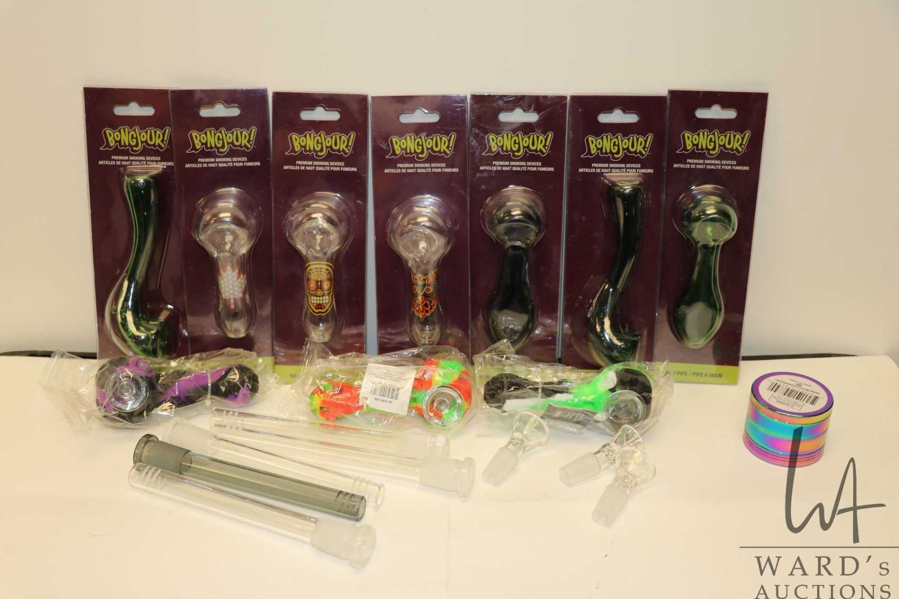Fourteen assorted pipes and one grinder