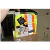 Fourteen high visibility vests and a 4' fiberglass step ladder
