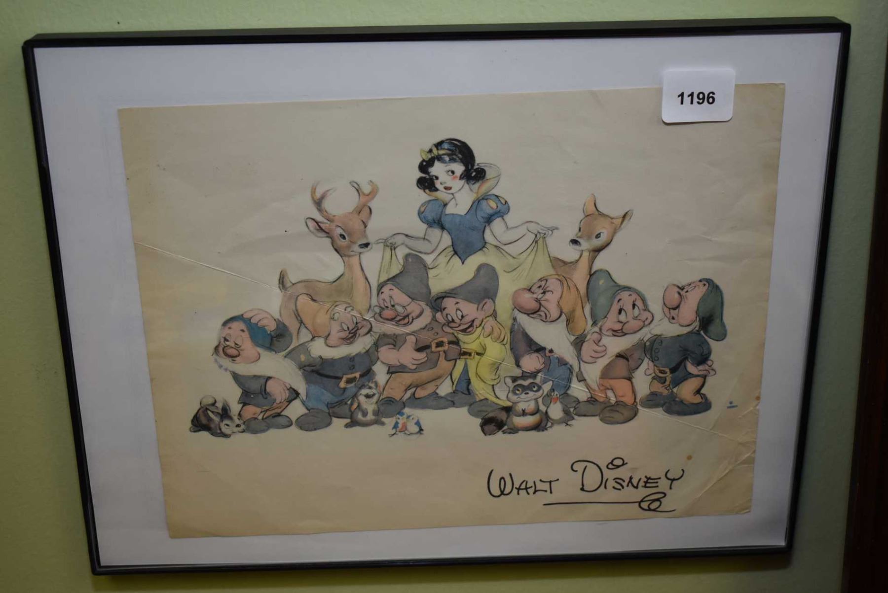 Framed Disney print of Snow-white and the seven dwarfs plus two deer