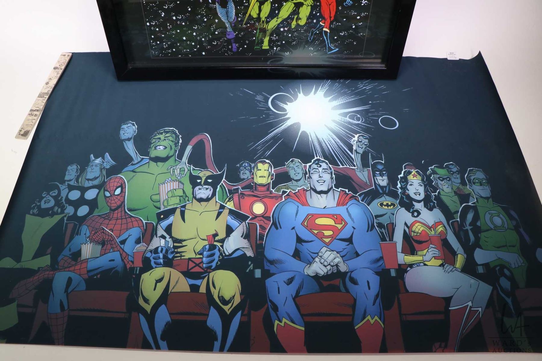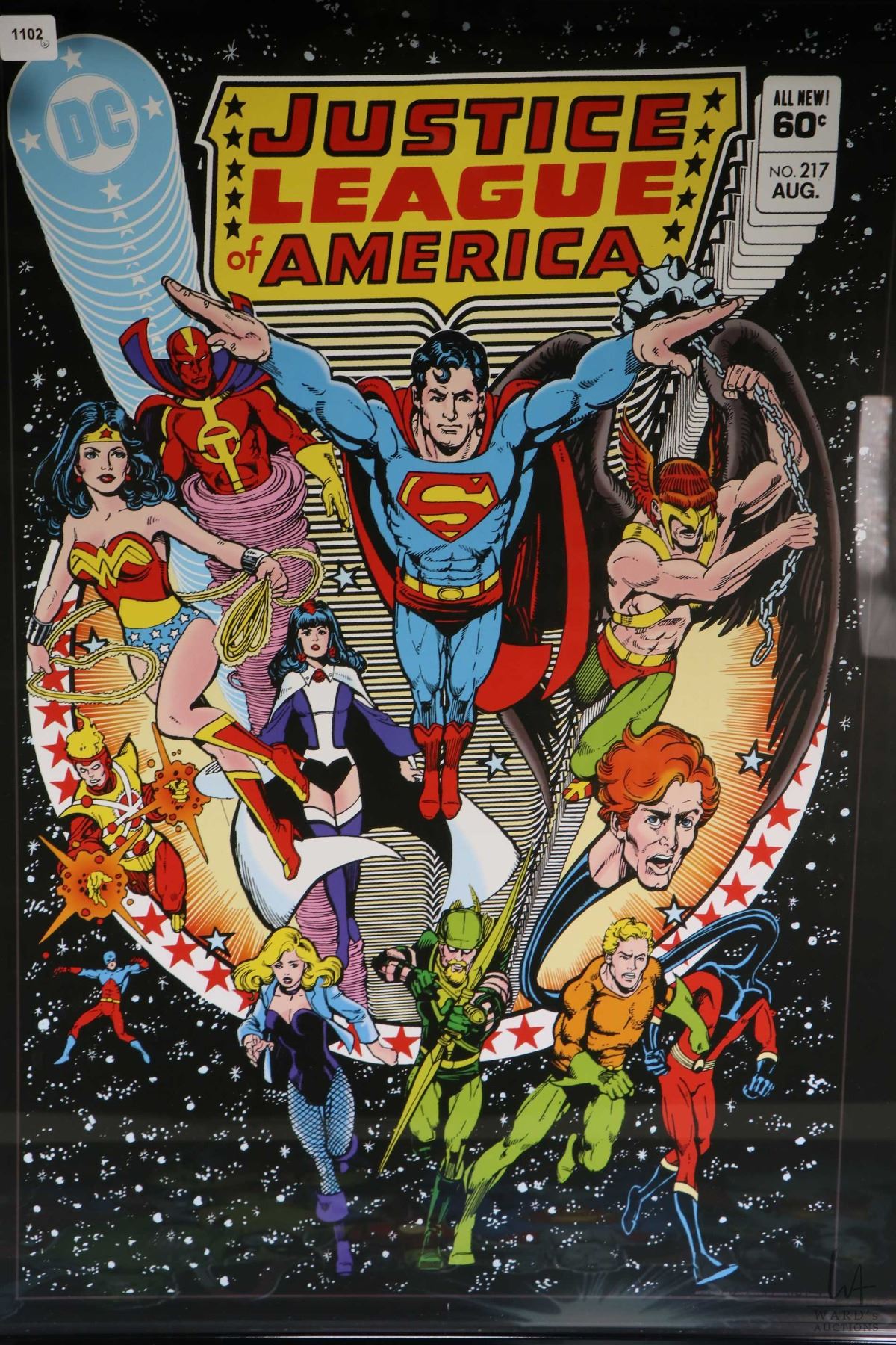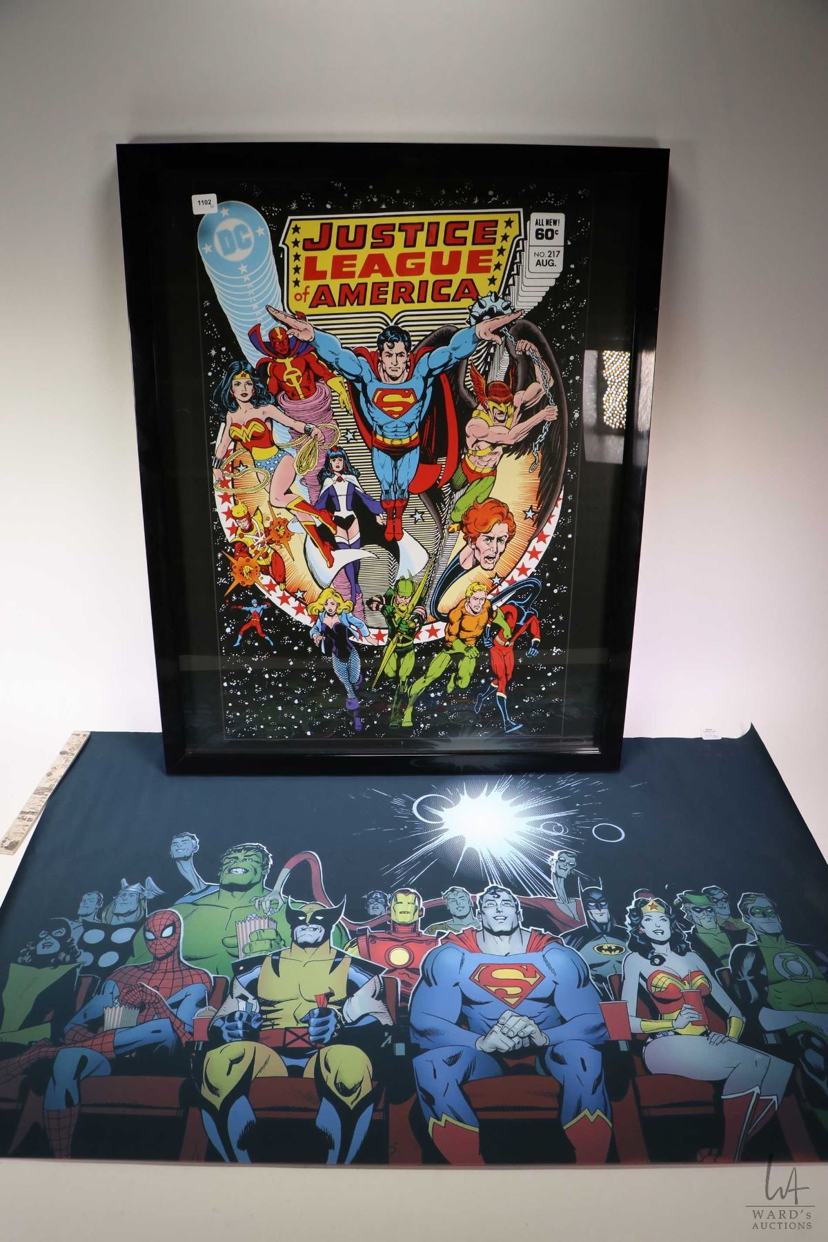 Framed Justice League of American poster and unframed Justice League silk style poster