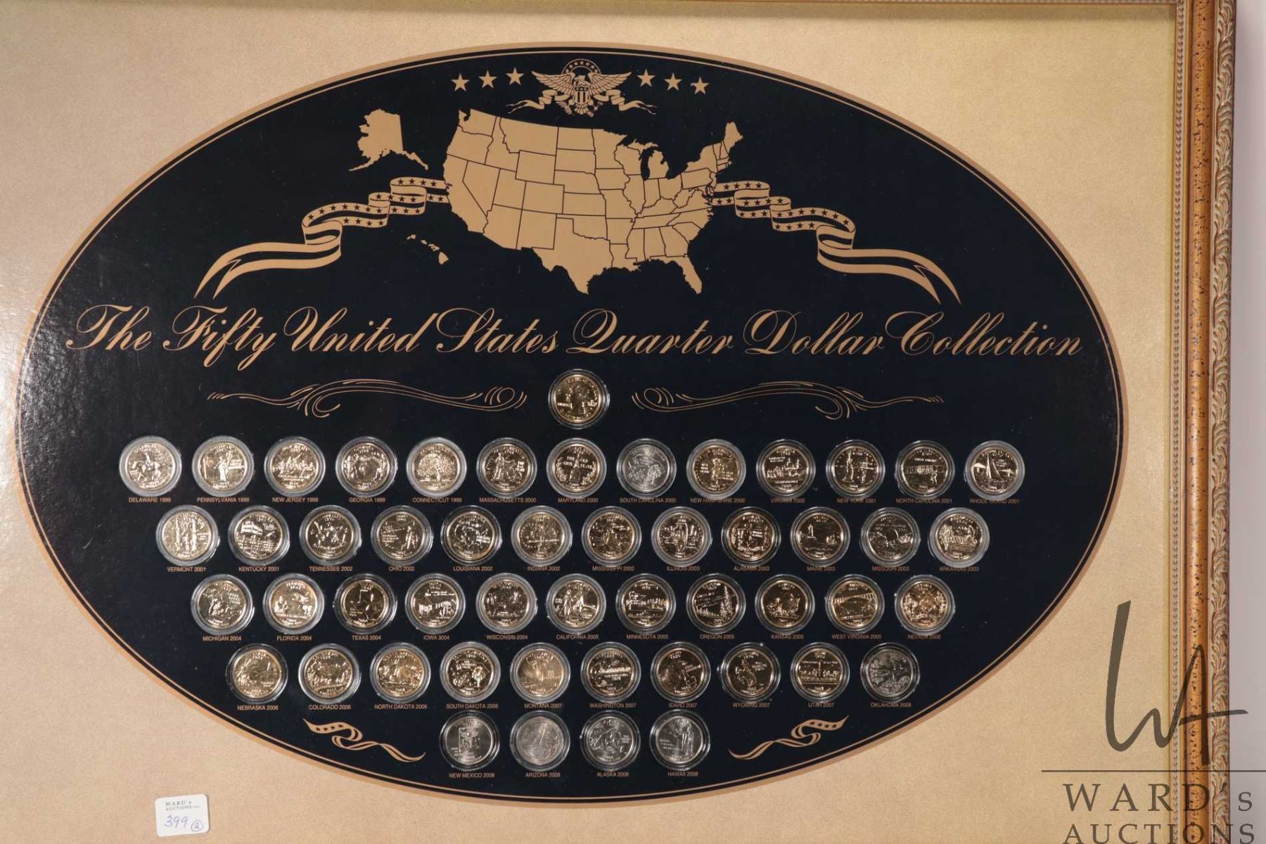 Framed The Fifty United States Quarter Dollar Collection plus a selection of Canadian, American and
