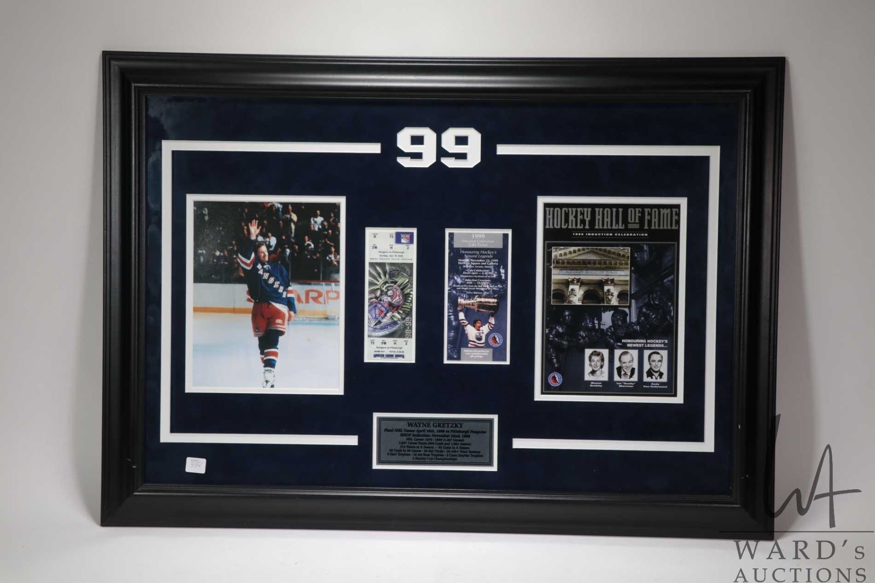 Framed Wayne Gretzky photo collage, overall dimensions including frame 24" X 34". Note: Artwork cann