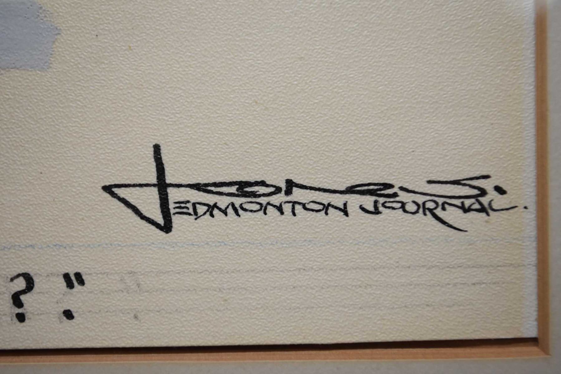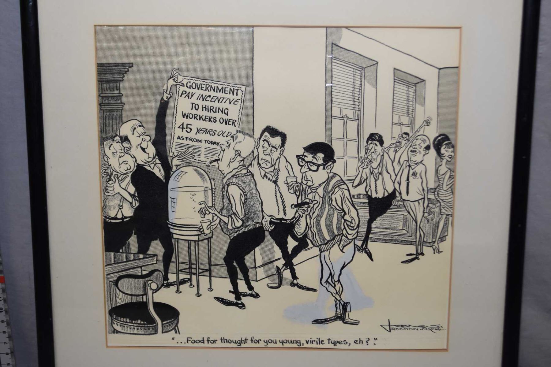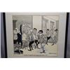 Framed Yardley Jones pen and ink drawing "....Food for thought for you young, virale typesm eh?" 11" X 11 1/2"