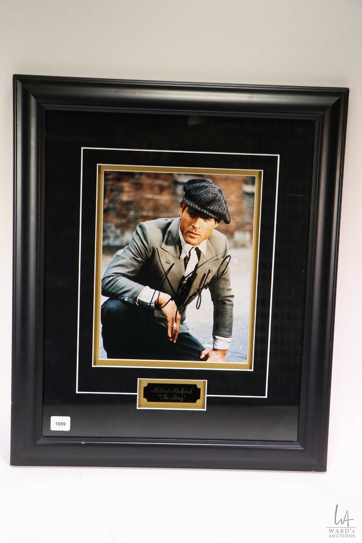 Framed autographed coloured photograph of Robert Redford as he appeared in "The Sting"