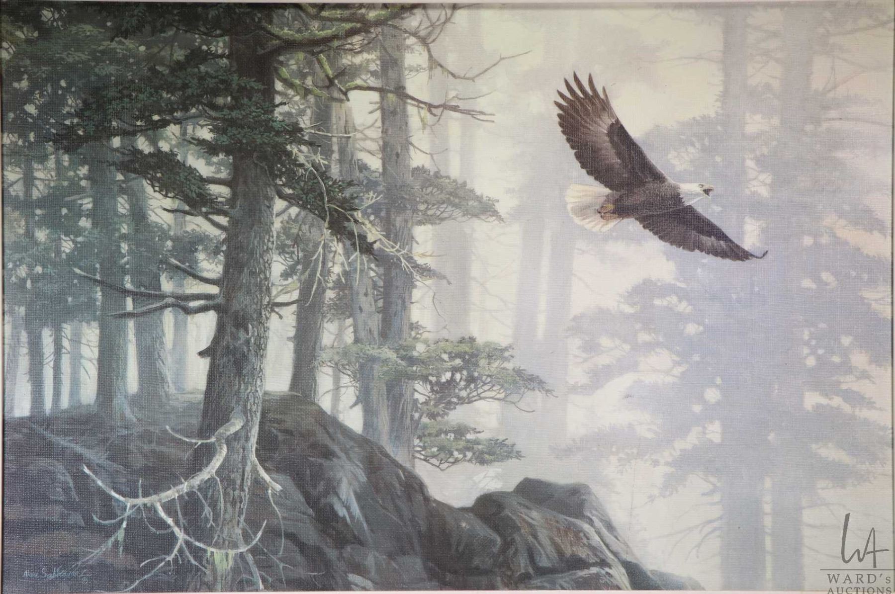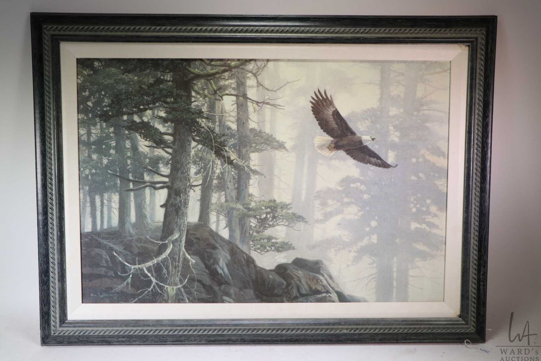 Framed giclee of a eagle in flight. Note: Not available for shipping. Local pickup only