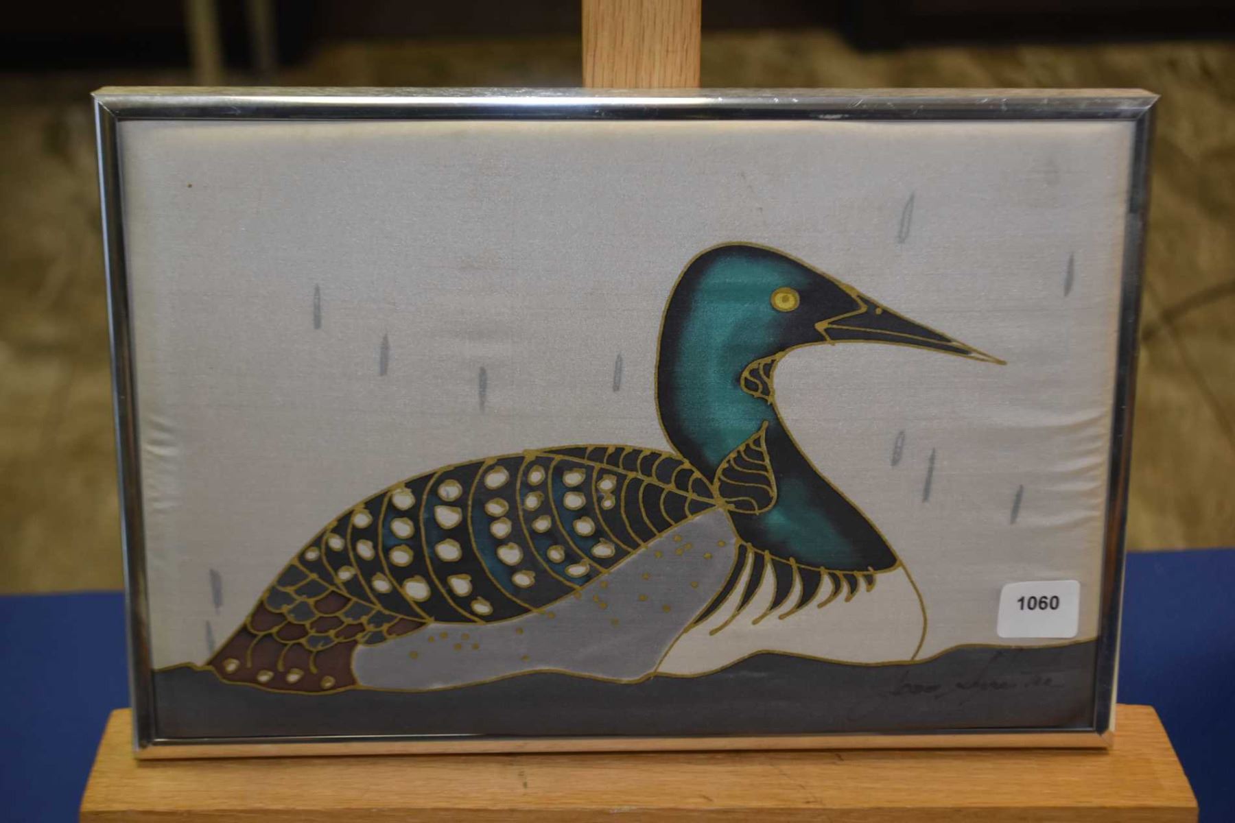 Framed hand painted on silk loon painting signed by artist 8" X 11"