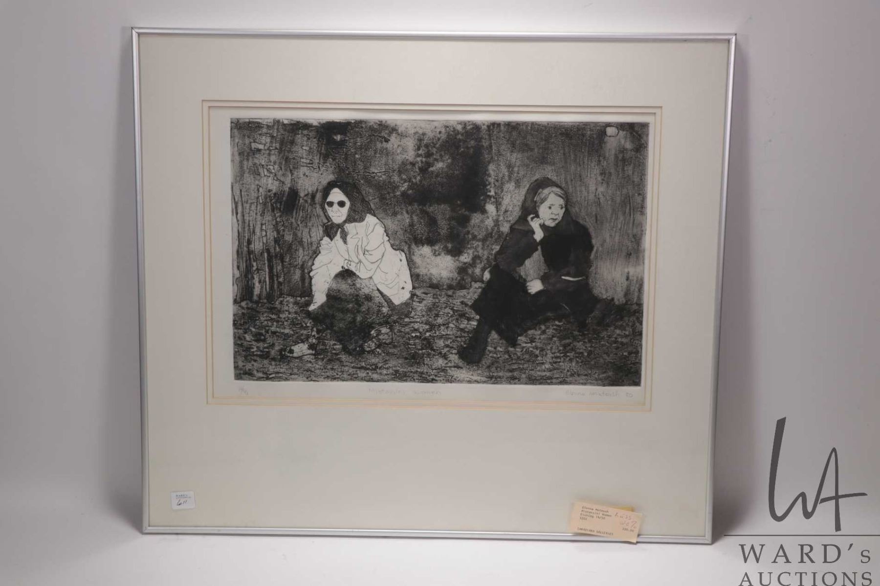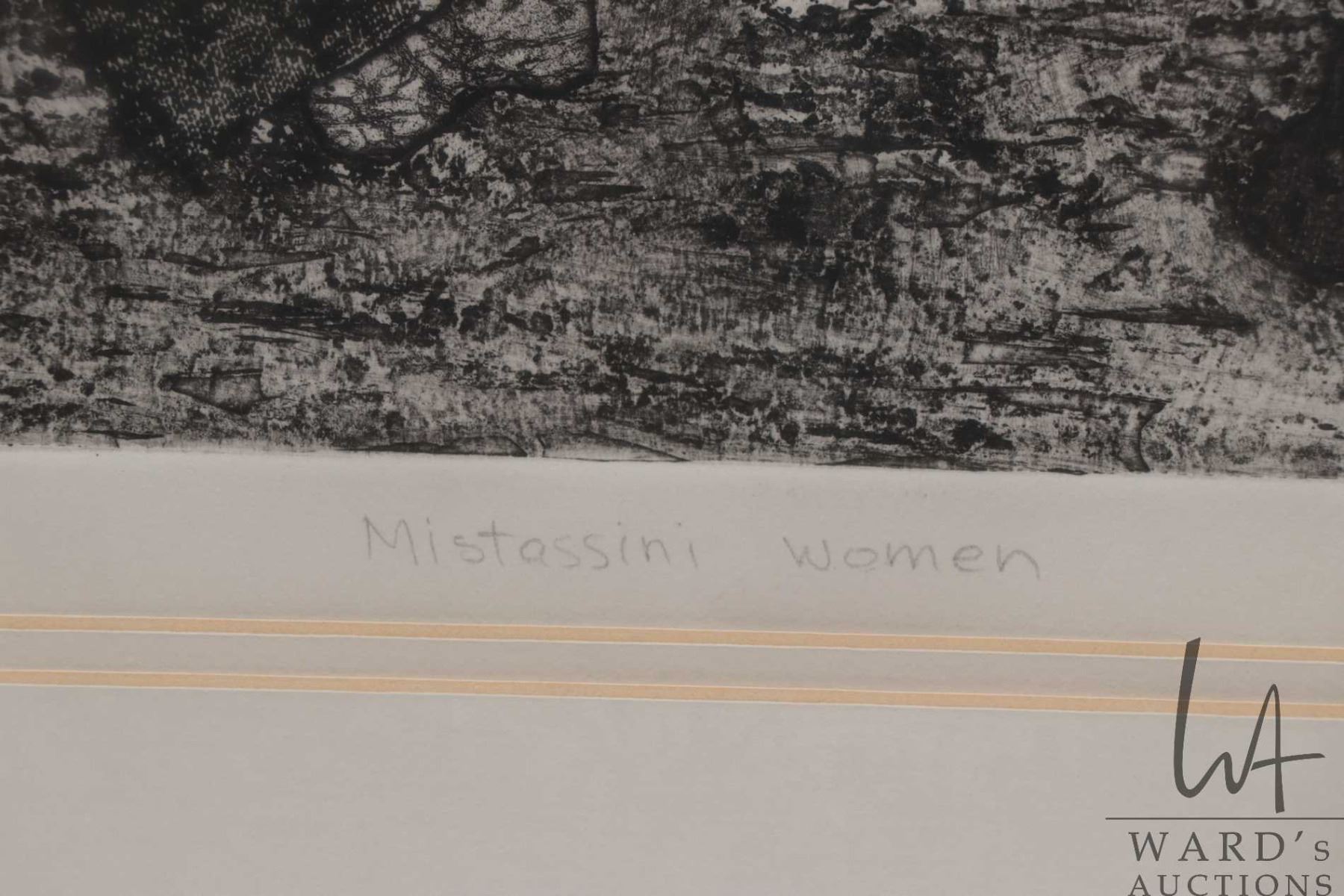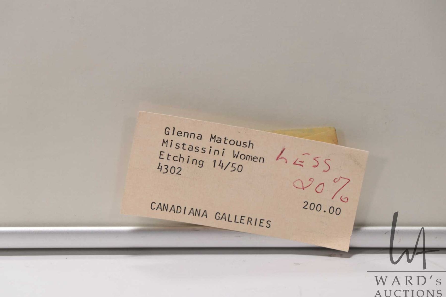 Framed limited edition etching titled "Mistassini Women" by artist Glenna Matoush,1981, 14/50, 12" X 18". Note: Artwork cannot be insured and is often too large to ship. Local pickup.