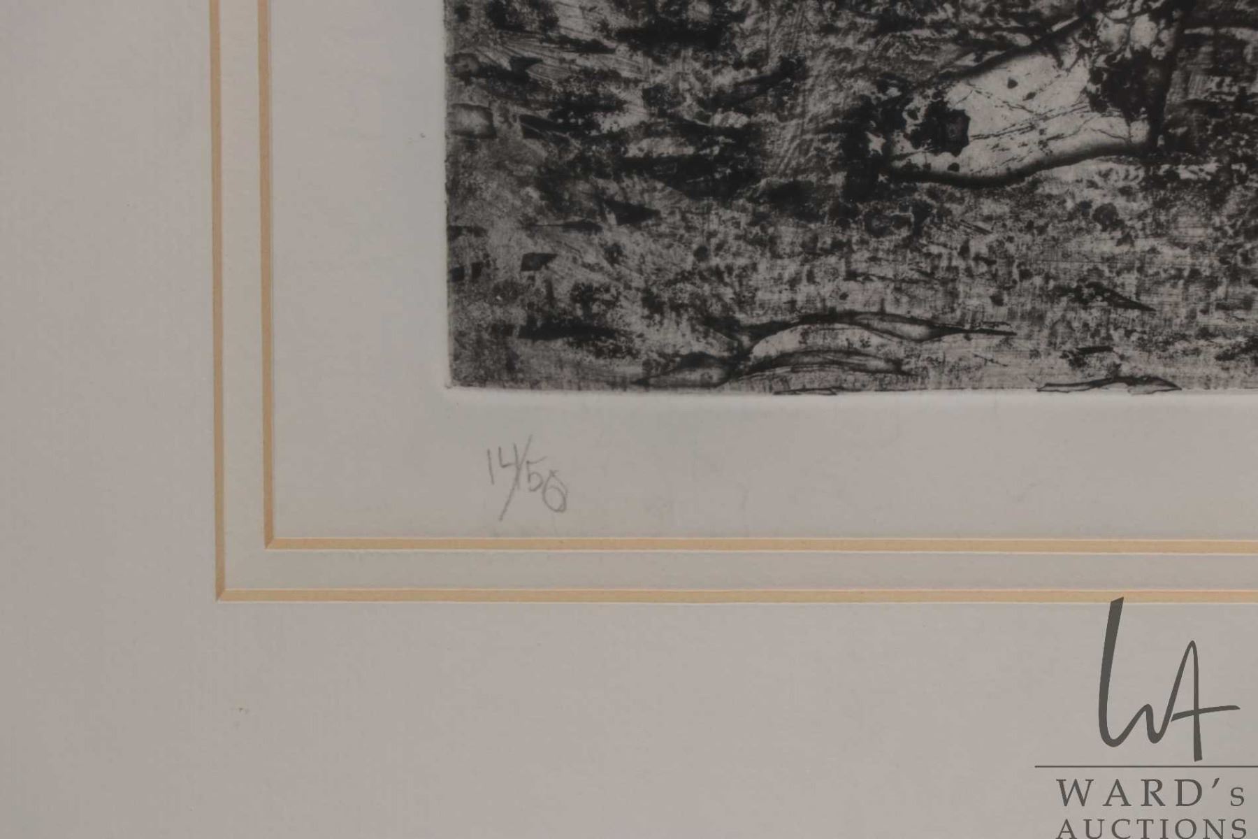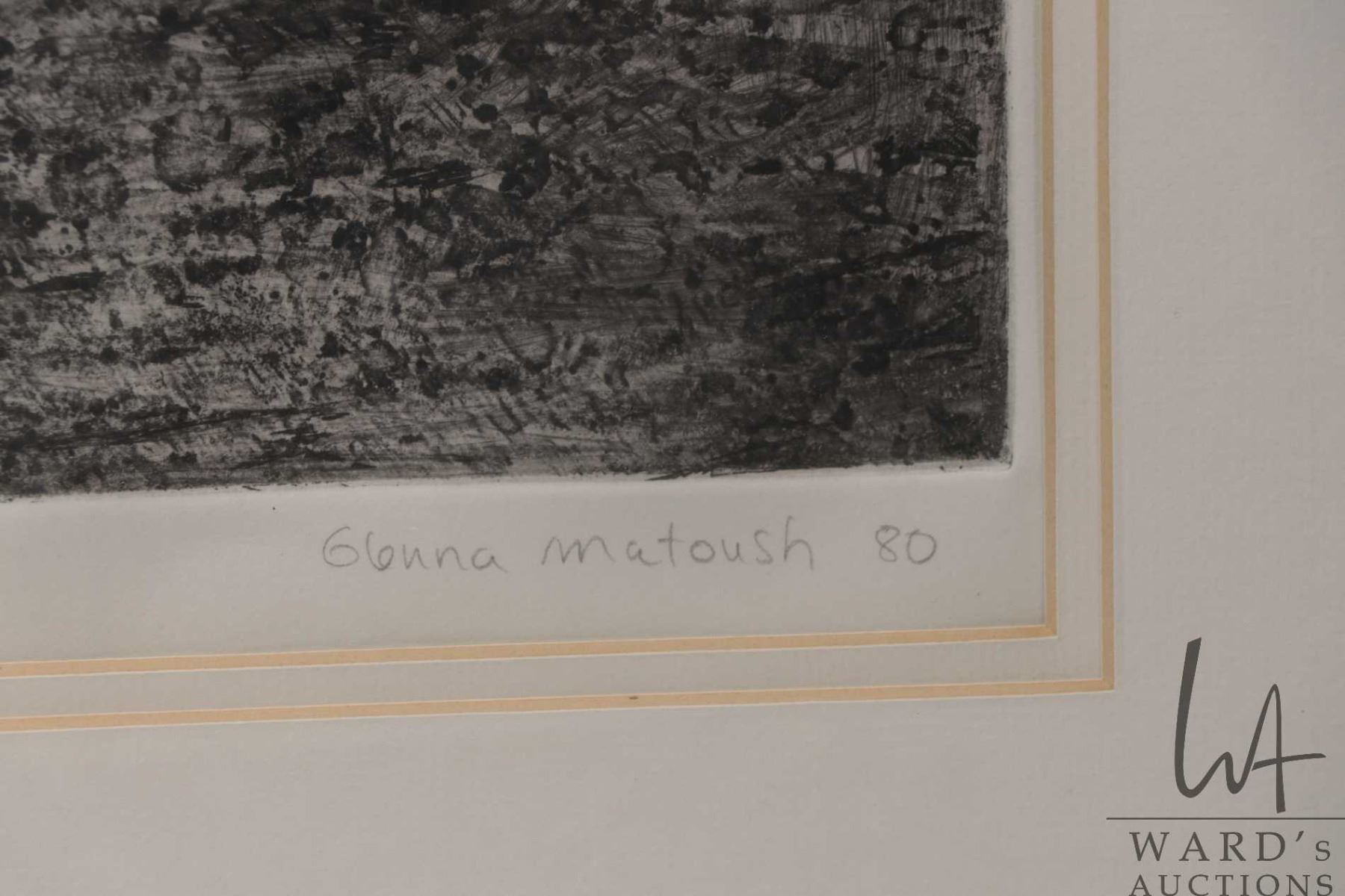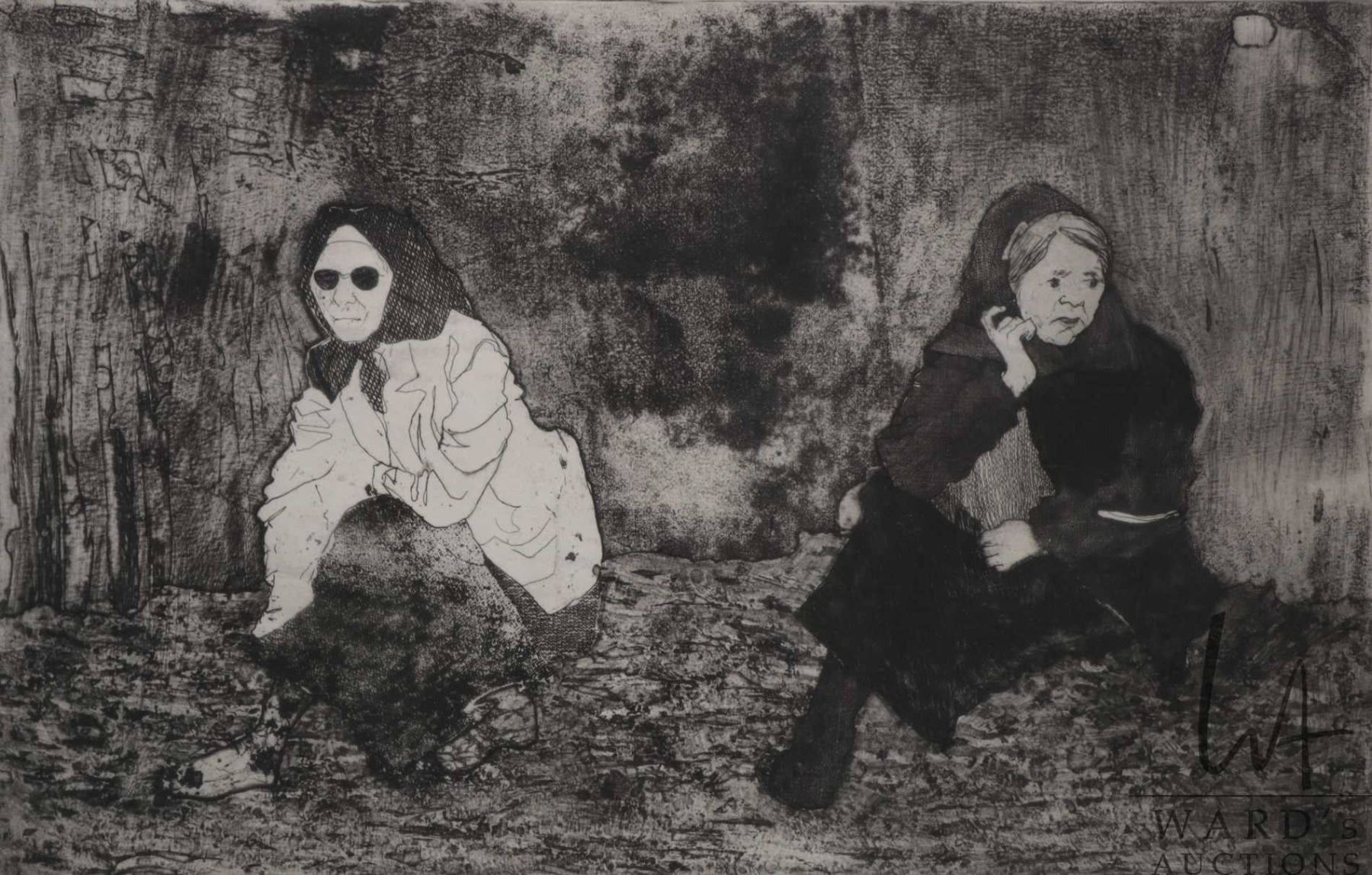 Framed limited edition etching titled "Mistassini Women" by artist Glenna Matoush,1981, 14/50, 12" X 18". Note: Artwork cannot be insured and is often too large to ship. Local pickup.