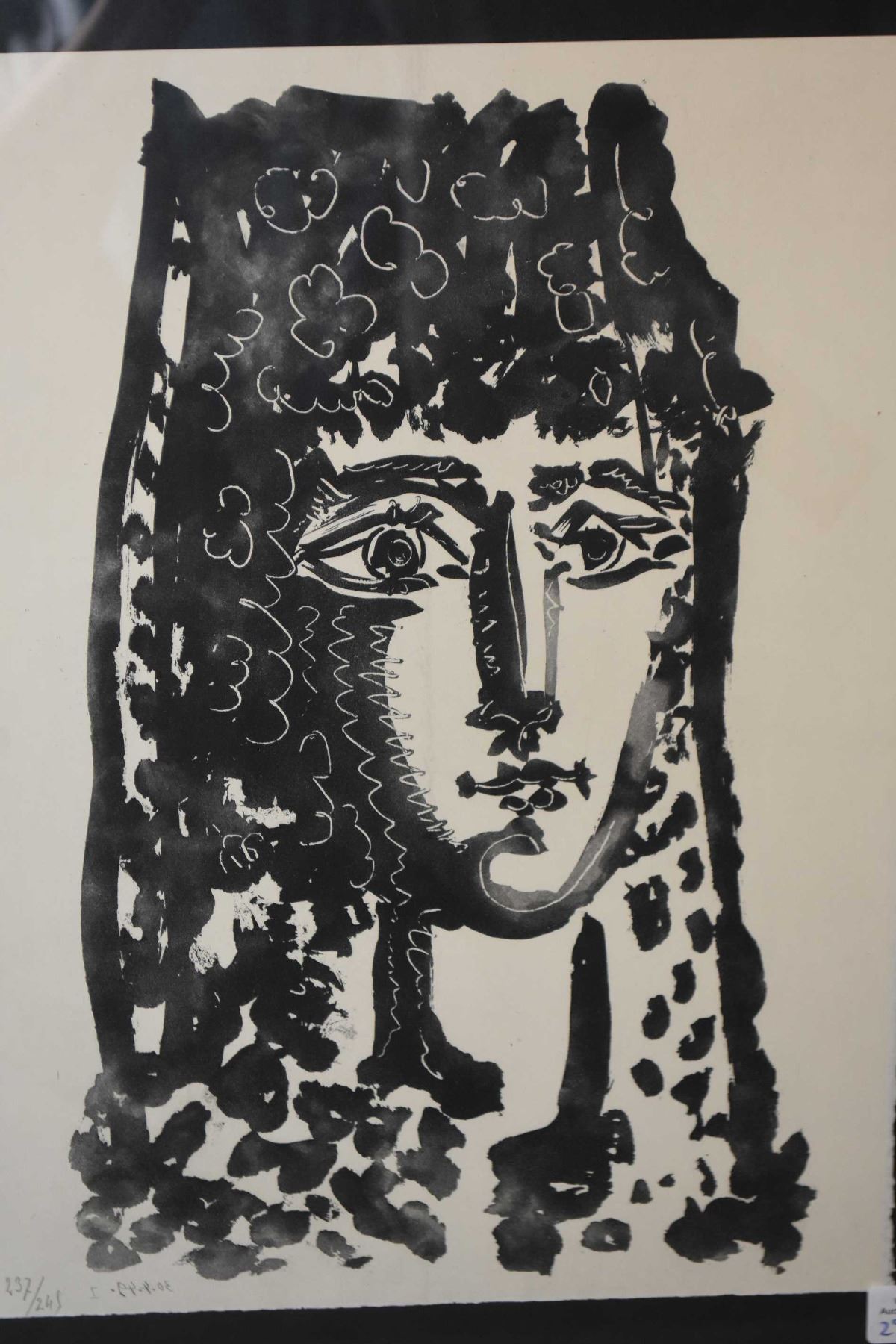 Framed limited edition lithograph of a Spanish female portrait, attributed to Pablo Picasso, 237/245, 14" X 10"
