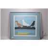 Framed limited edition lithograph titled "Land and Sea" pencil signed in syllabics by artist Kingmeata ((Etidlooie) 1979, Cape Dorset, 39/50, 16" X 18". Note: Artwork cannot be insured and is often too large to ship. Local pickup.