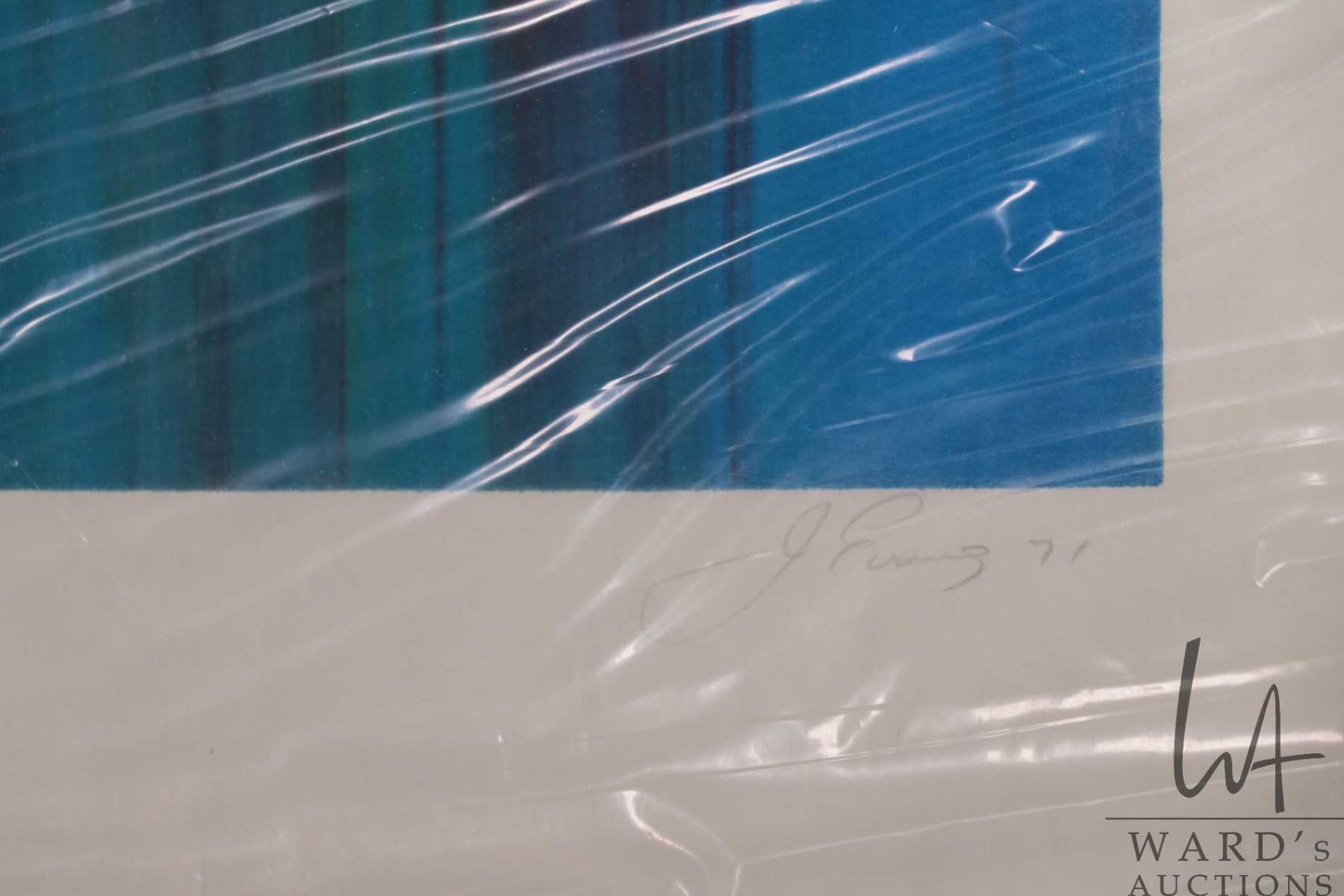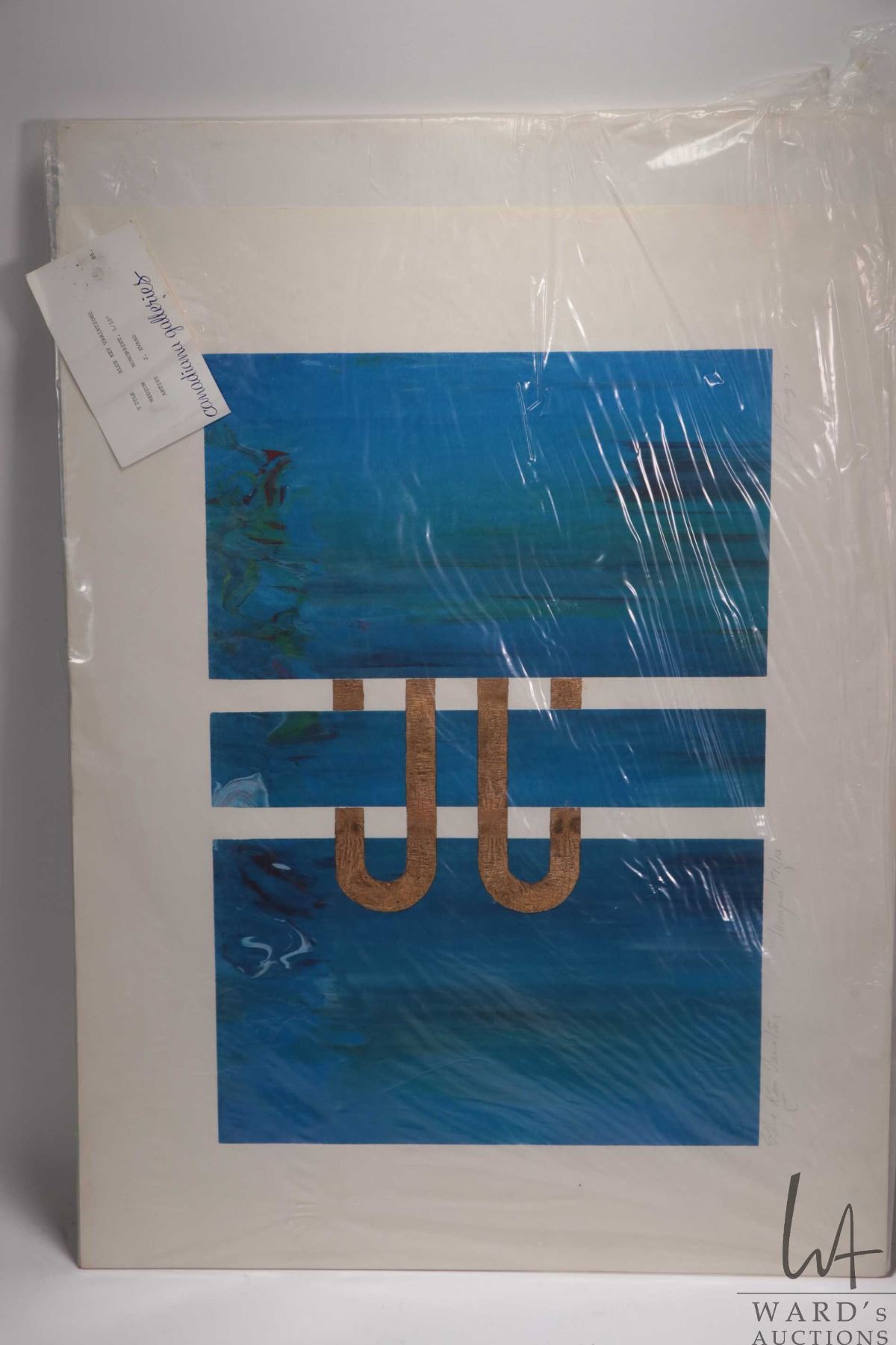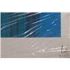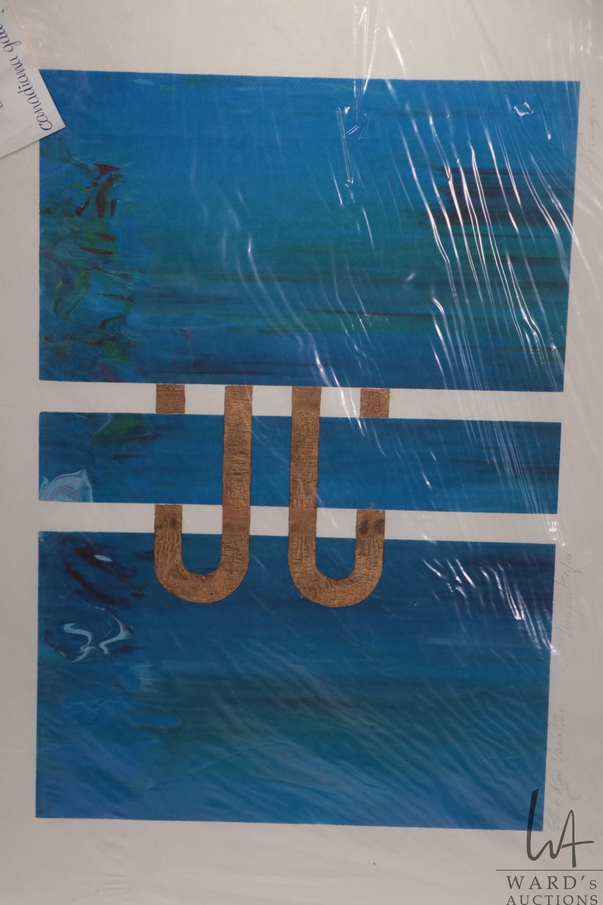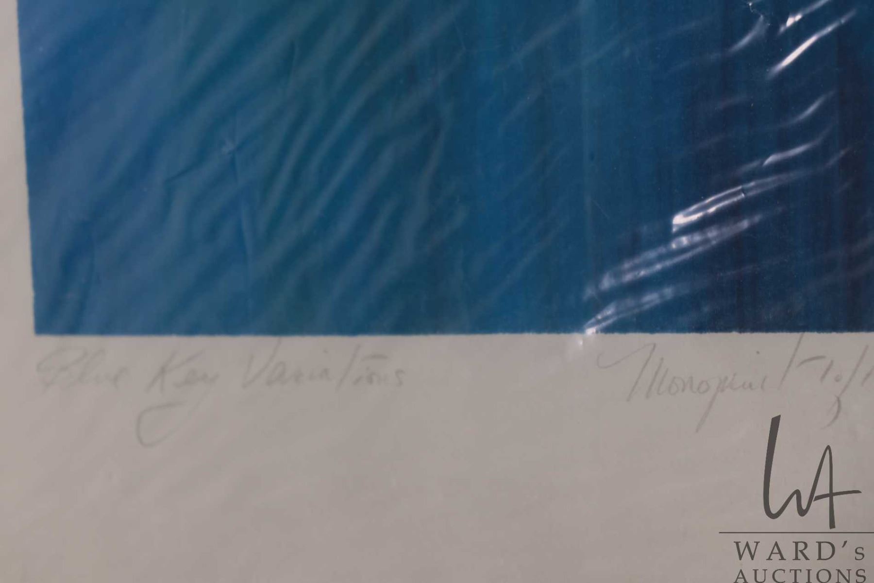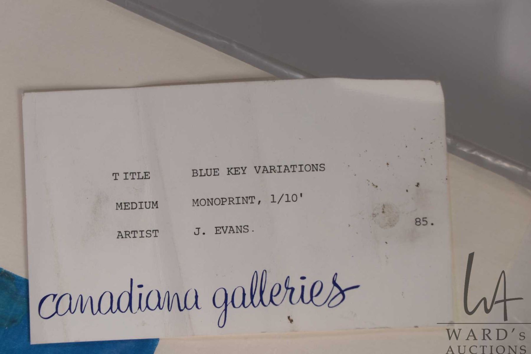 Framed limited edition monoprint, titled "Blue Key Variation", pencil signed by artist J. Evans, 1/10, 26" X 19"