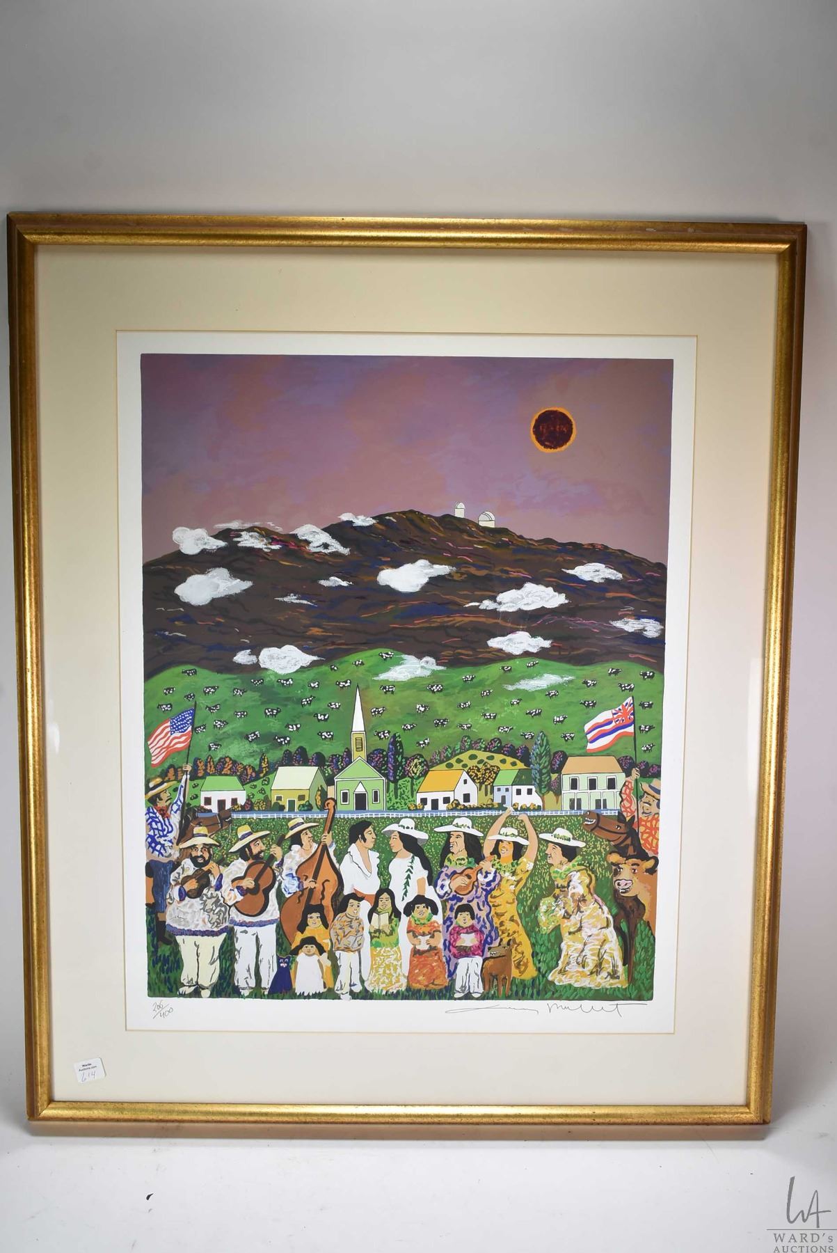 Framed limited edition print of a Mexican American celebration, pencil signed by artist Guy Buffet, 206/400