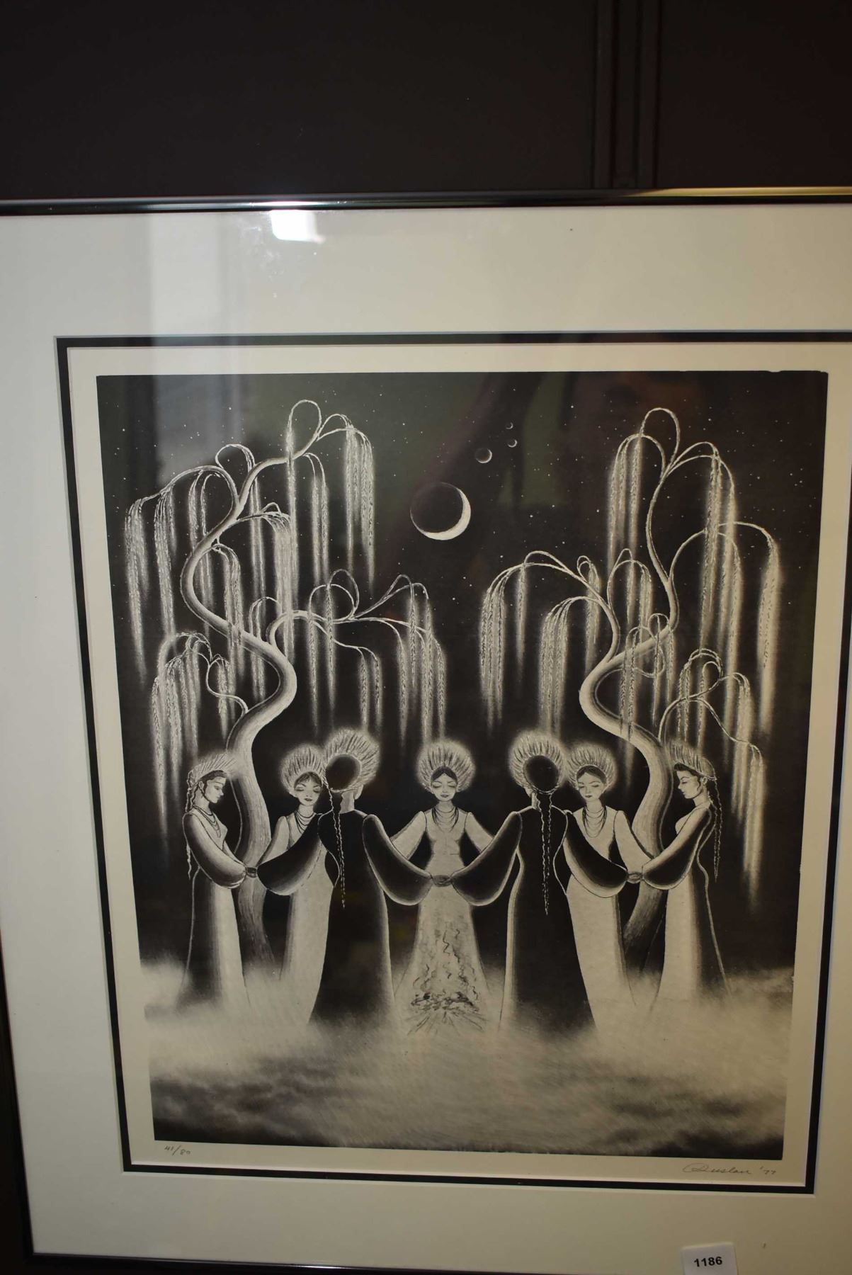 Framed limited edition print of a prayer circle pencil signed by artist 41/80