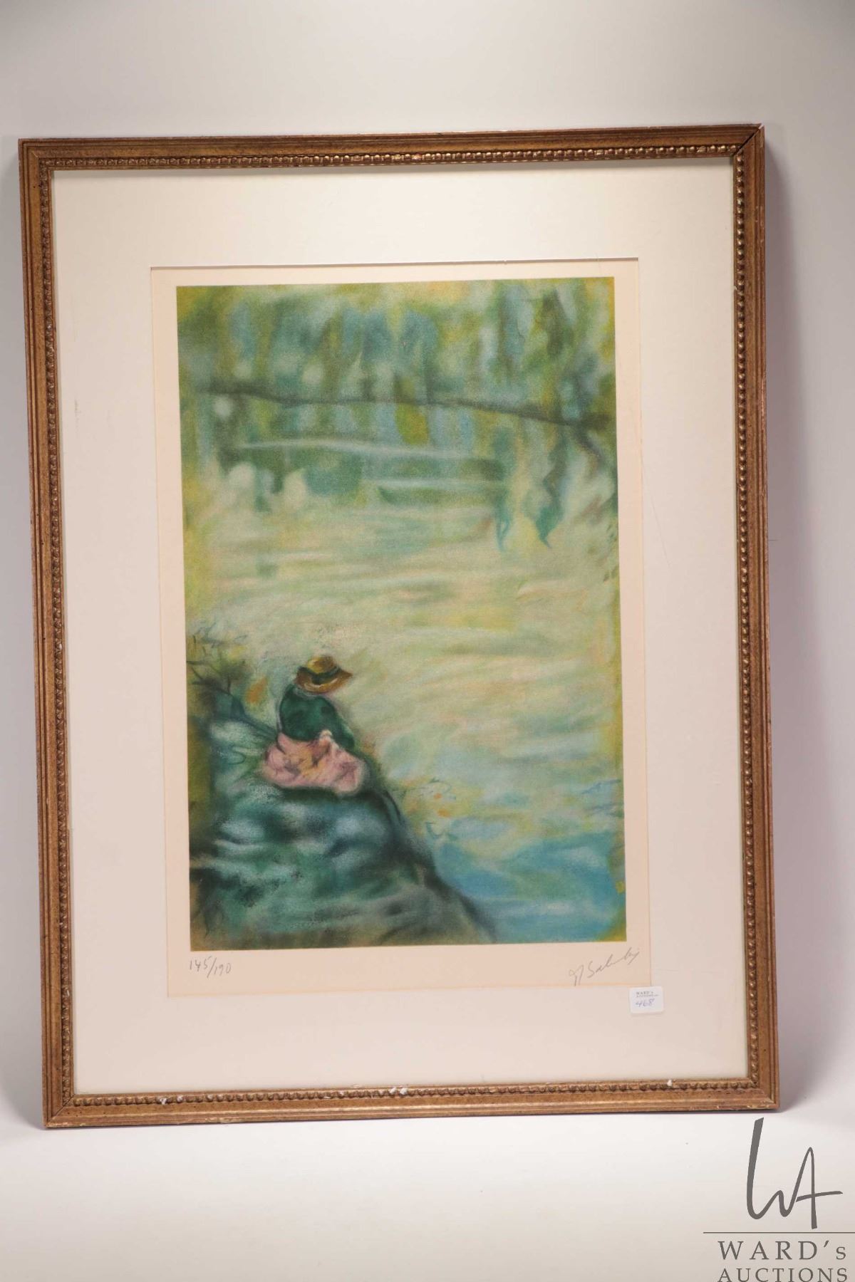 Framed limited edition print of a young girl by a lake, signed by artist 145/ 190. Overall dimensions including frame 29" X 22 1/2". Note: This is too large to ship. Local pickup only