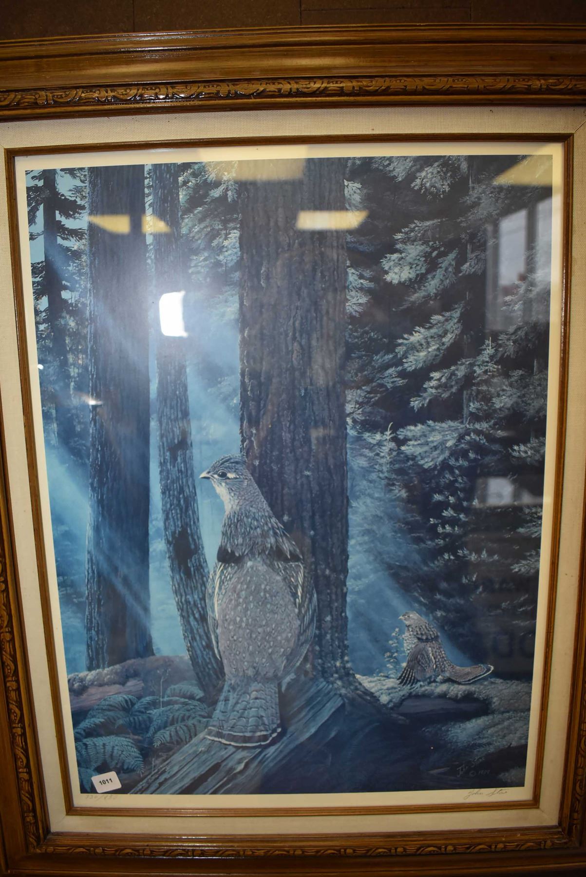 Framed limited edition print of game birds 330/950 pencil signed by artist John Stone
