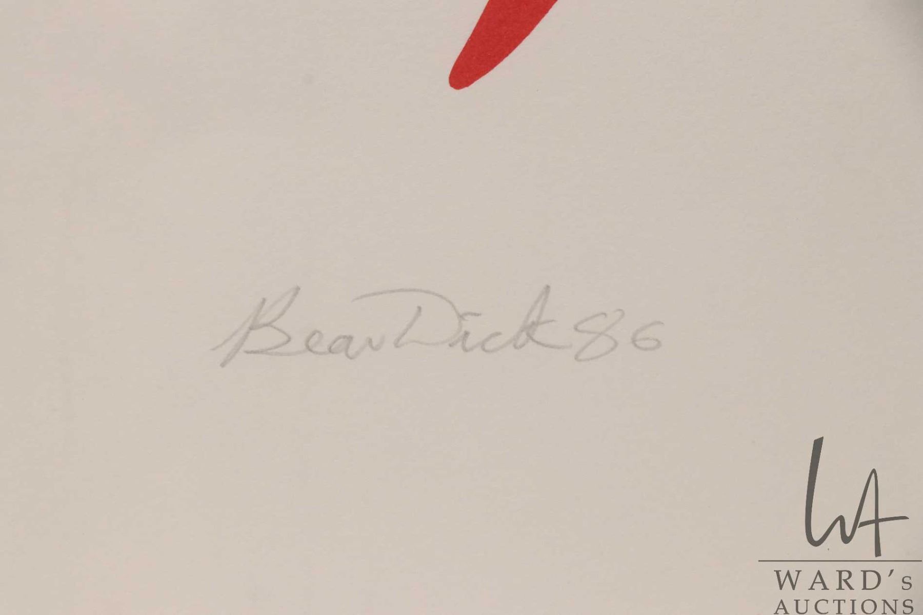 Framed limited edition print titled "Crab" 124/200 and pencil signed by artist Beau Dick, overall dimensions including frame 30" X 25 1/4"