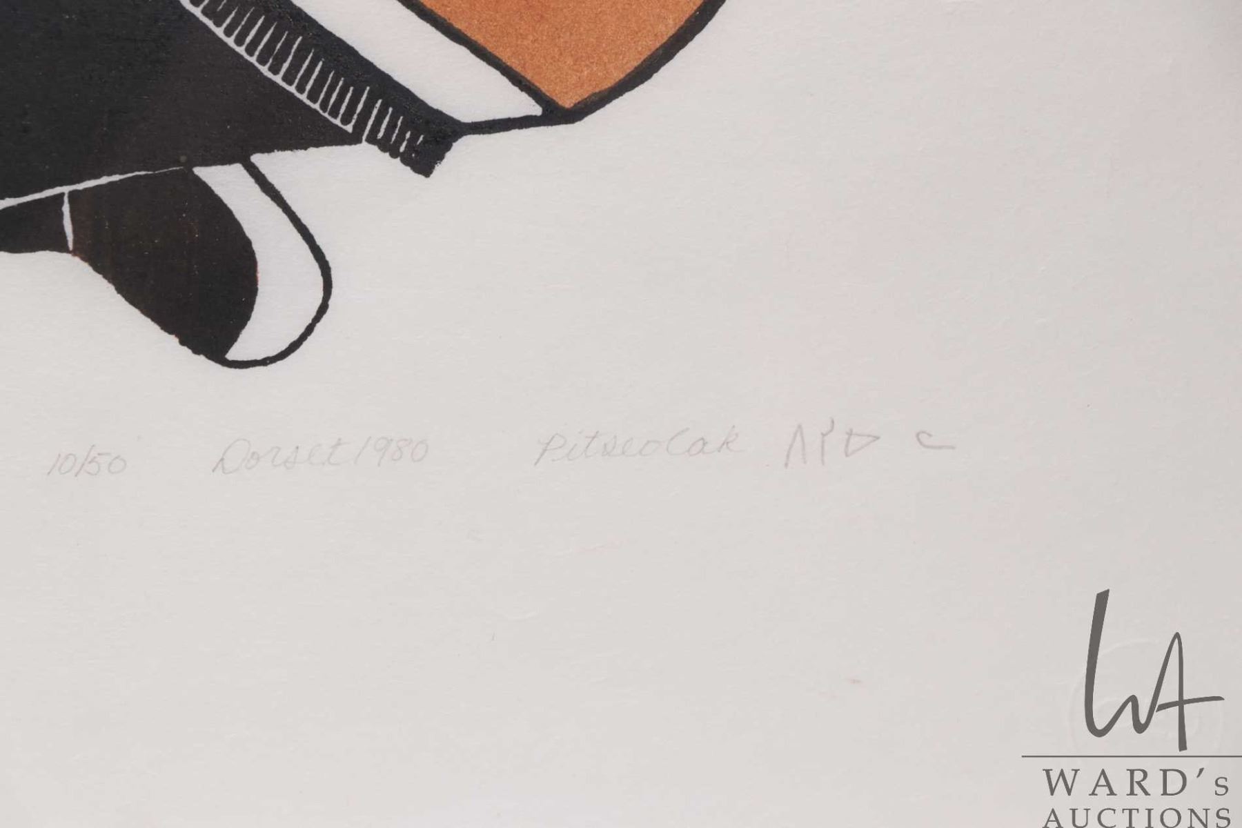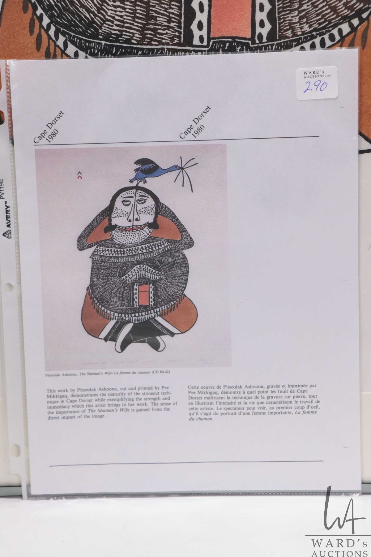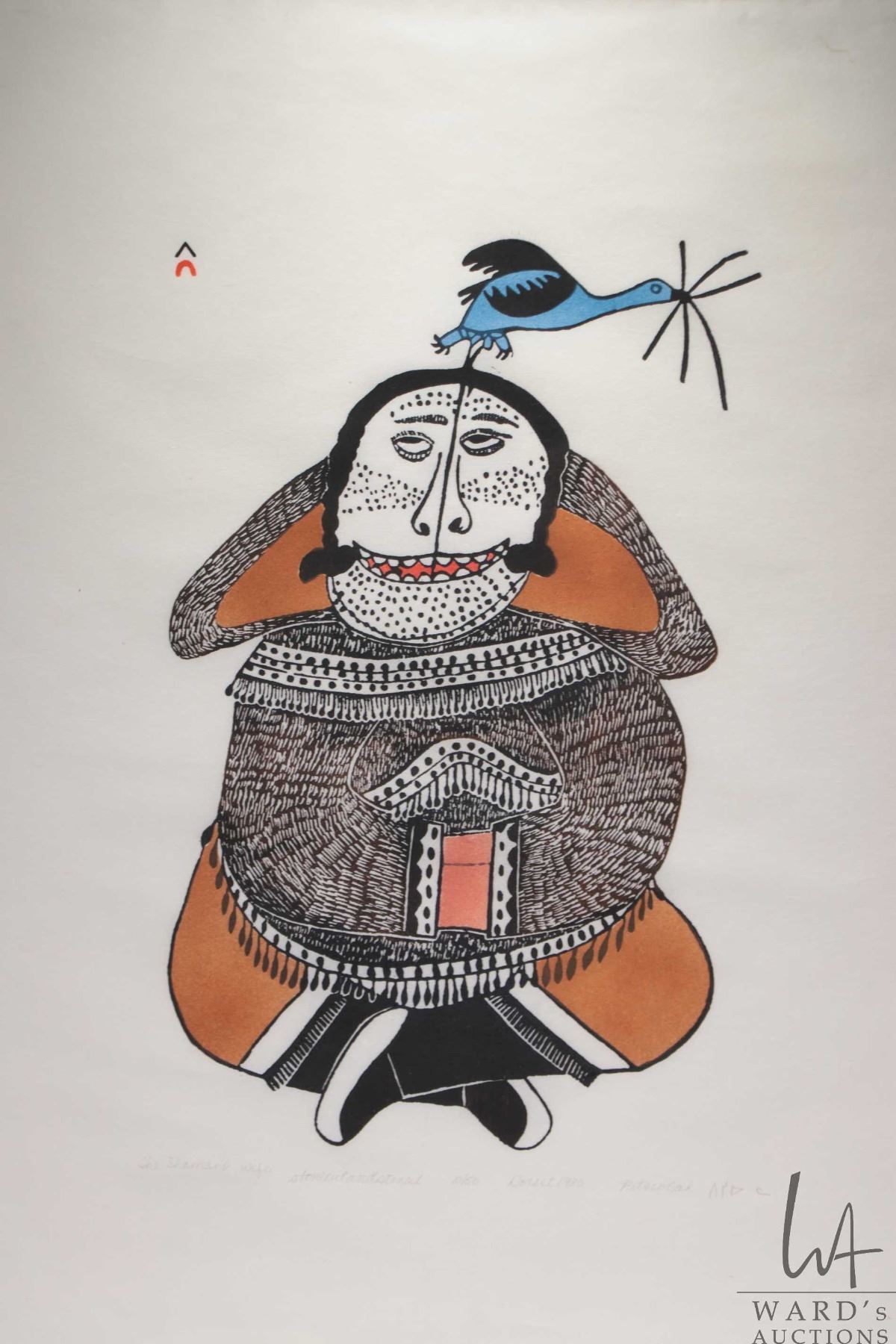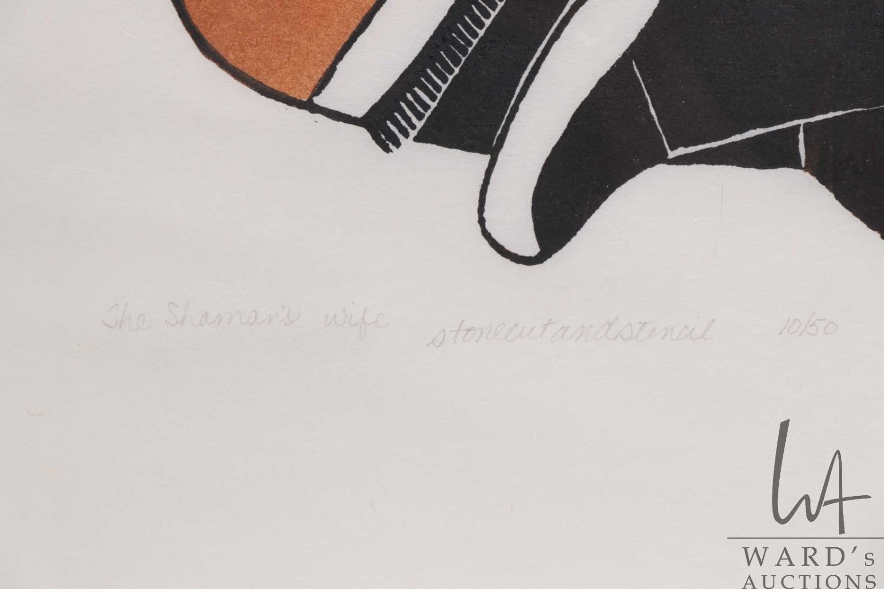Framed limited edition print titled "The Shaman's Wife", Dorset 1980, pencil signed by artist Pitseolak Ashoona, overall dimensions 33" X 25". Note: Artwork cannot be insured and is often too large to ship. Local pickup.