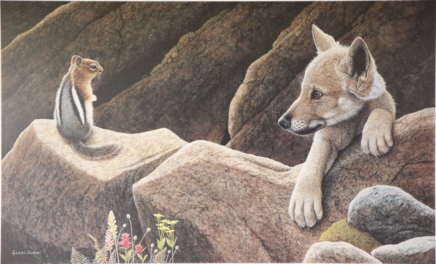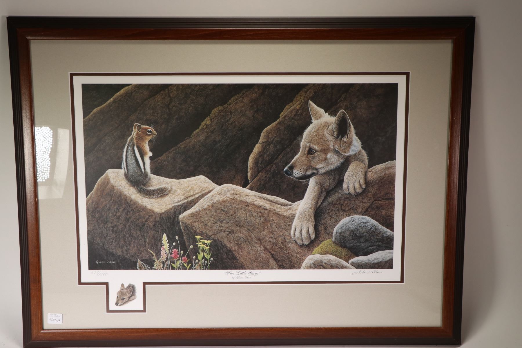 Framed limited edition print titled "Two Little Guys" 877/1000 pencil signed by artist Glen Olson