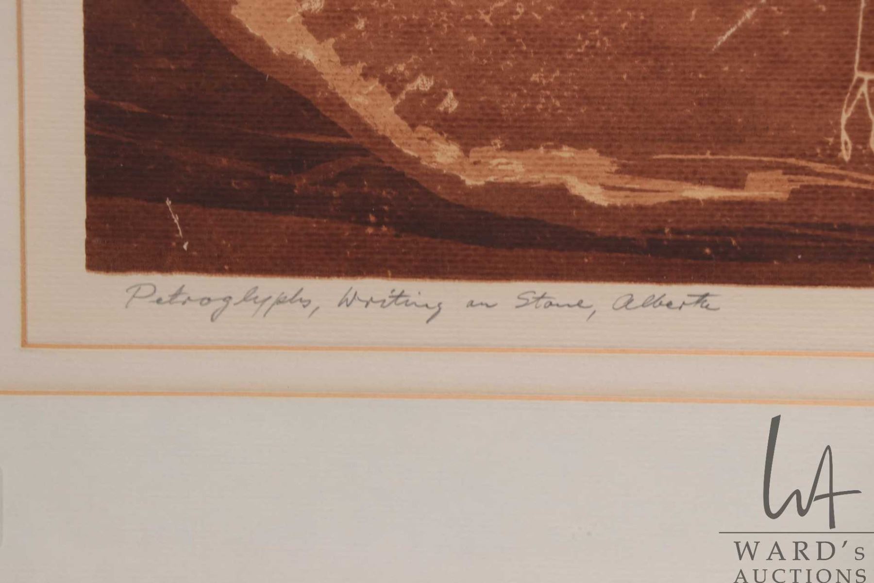 Framed limited edition silk screen print "Petroglyphs, writing on stone Alberta" 20/20, pencil signe