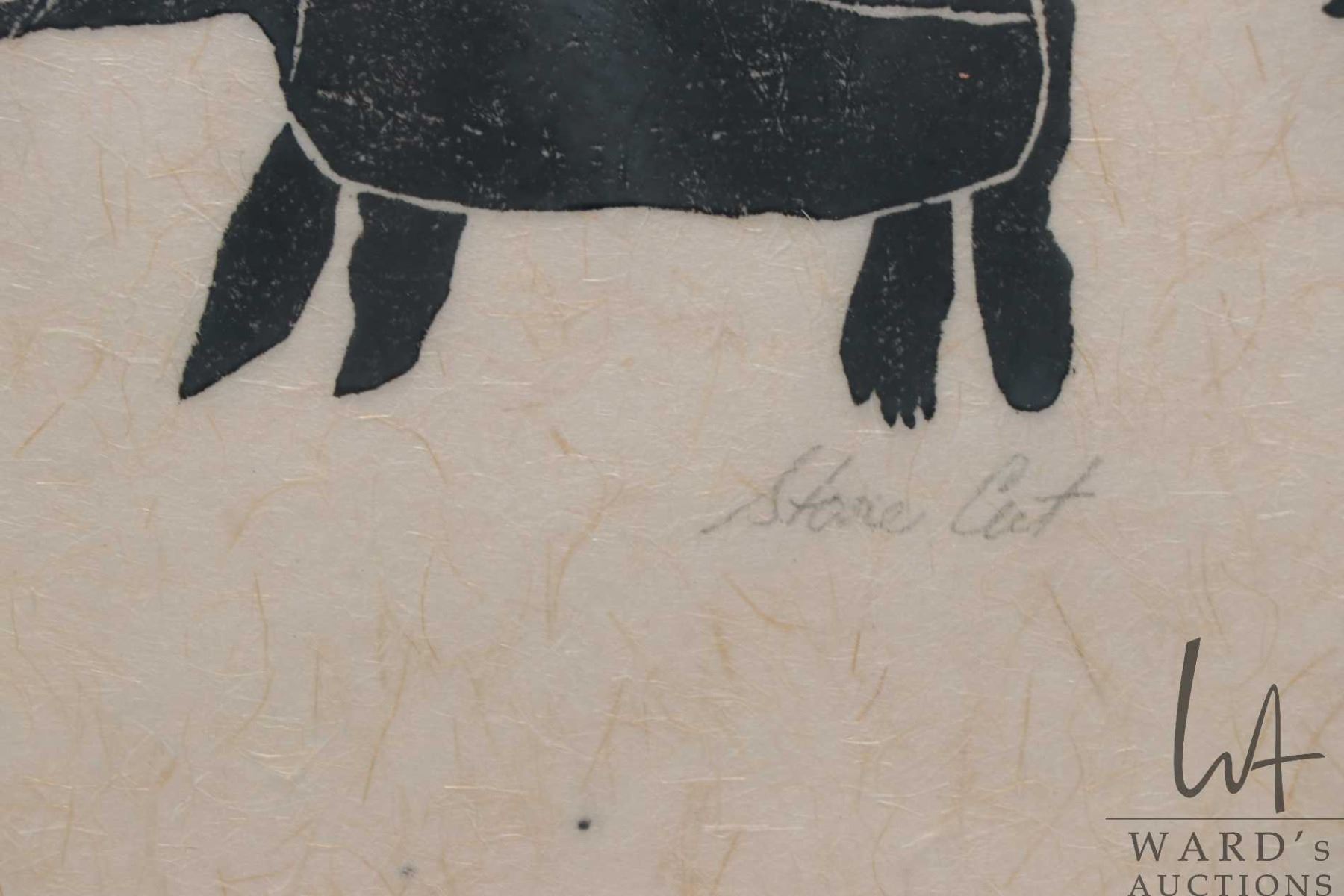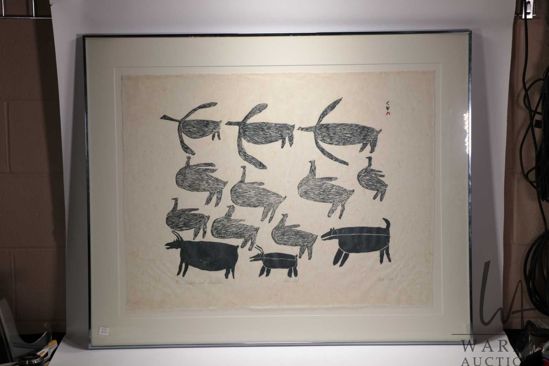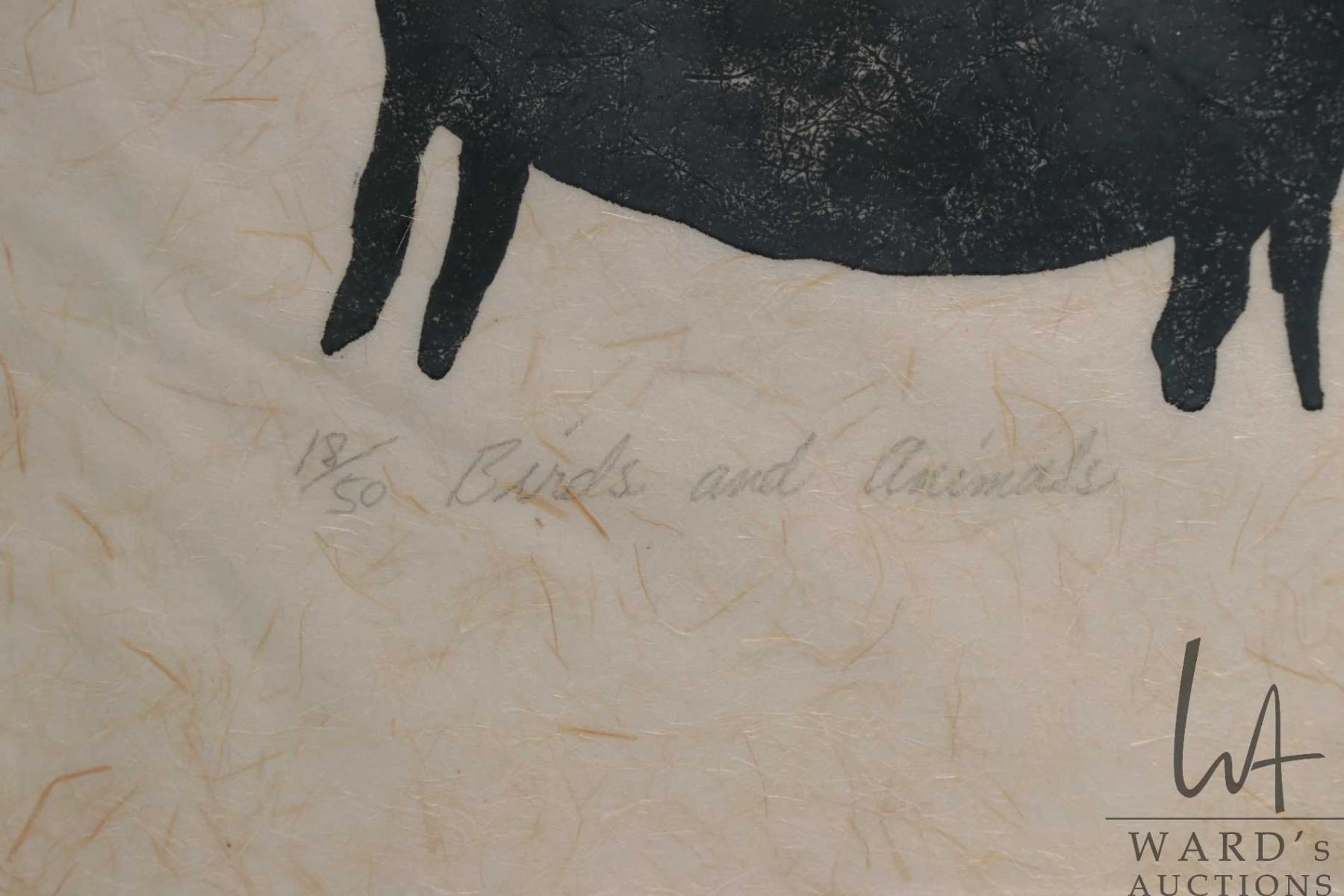 Framed limited edition stone cut print titled "Birds and Animals" 18/50 signed by artist Parr 1964, overall dimensions 32 1/4" X 39 1/2". Note: Artwork cannot be insured and is often too large to ship. Local pickup.