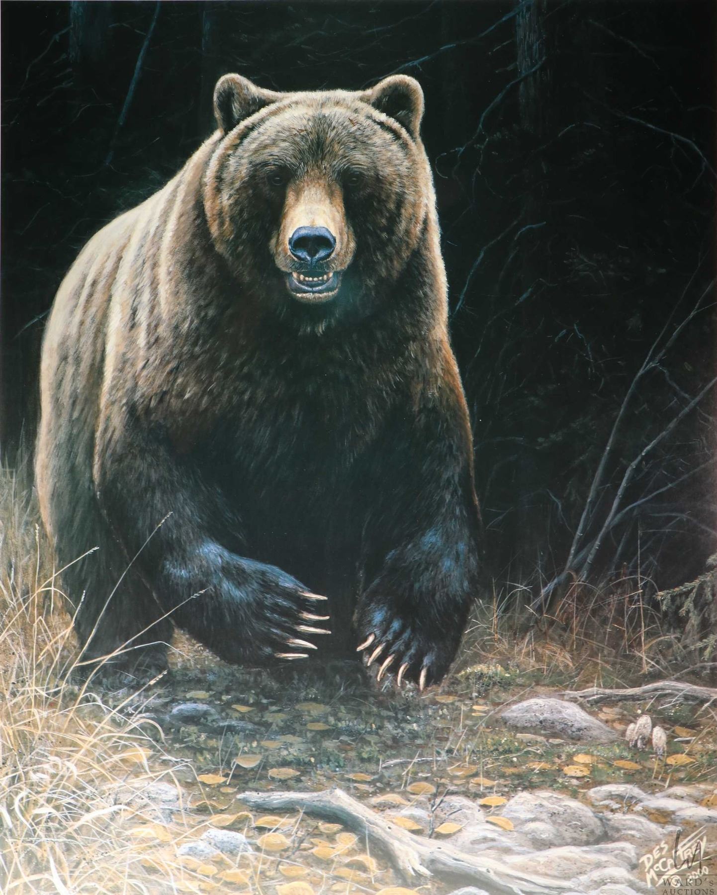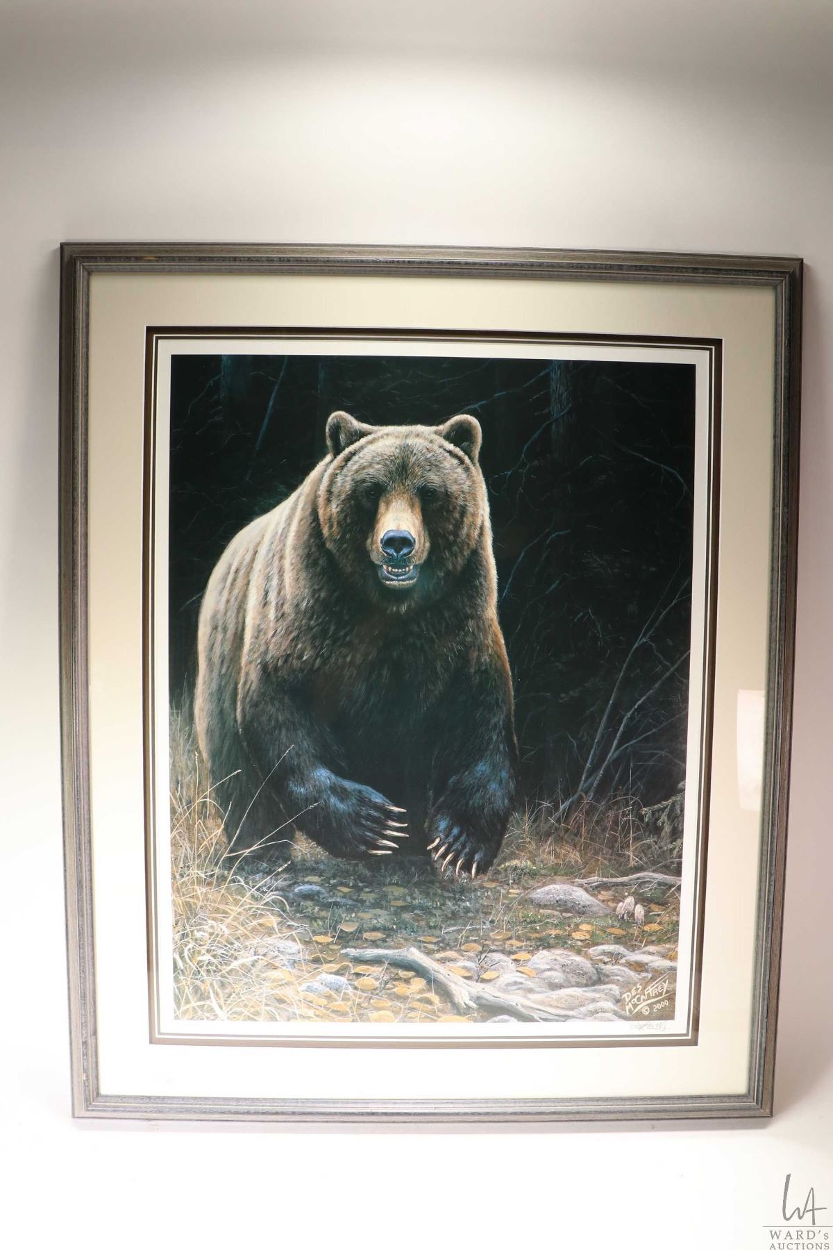 Framed limited edition untitled print of a grizzly bear 192/950 pencil signed by artist Des McCaffery