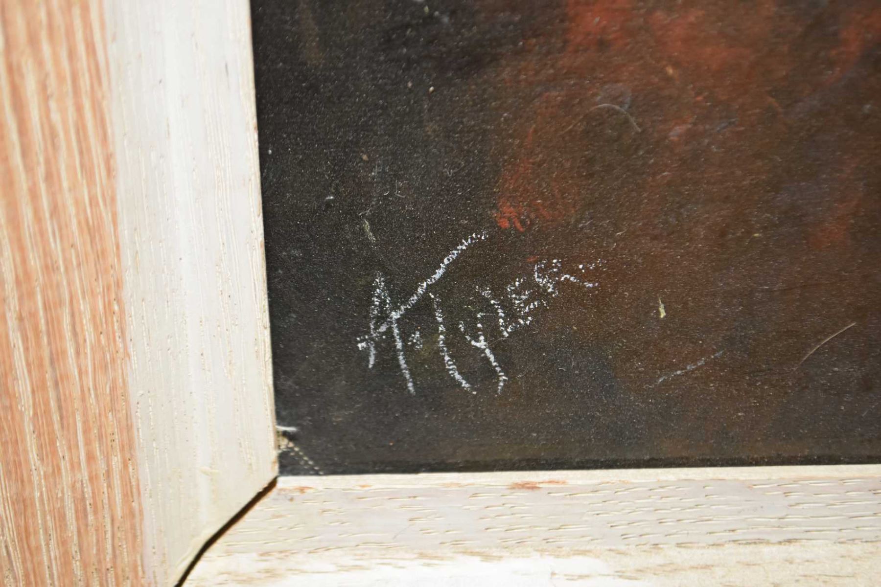 Framed oil on board painting of skating/dancing figures signed by artist A. Tyler 20" X 16"