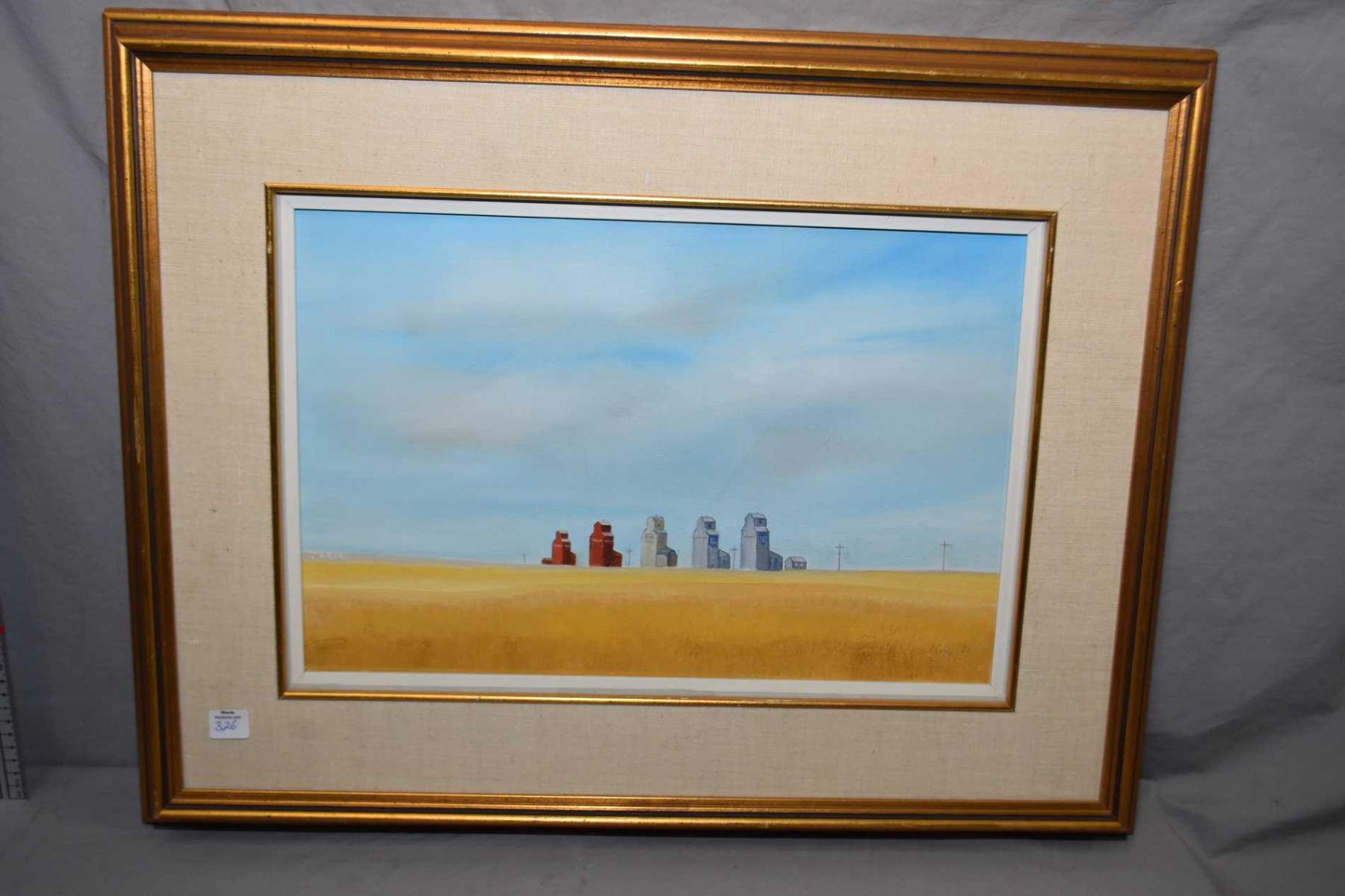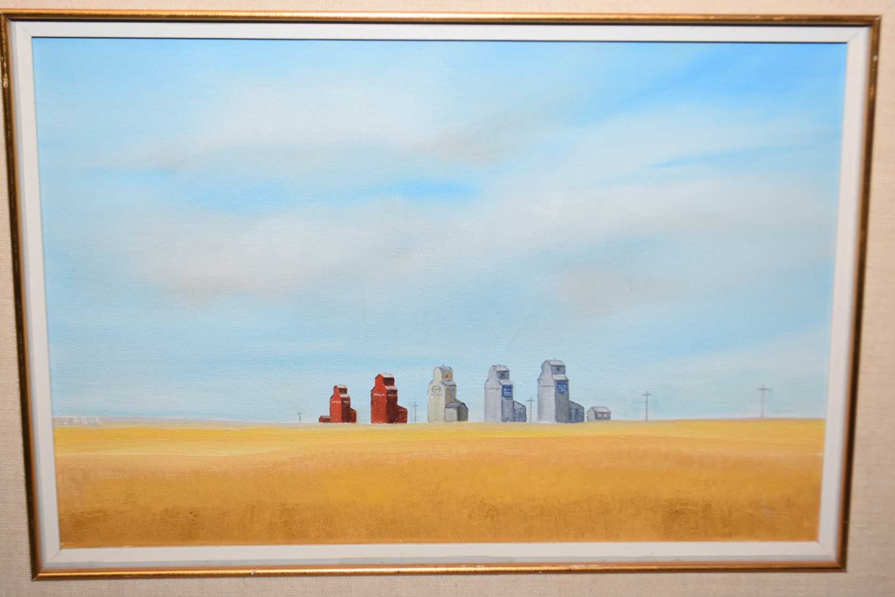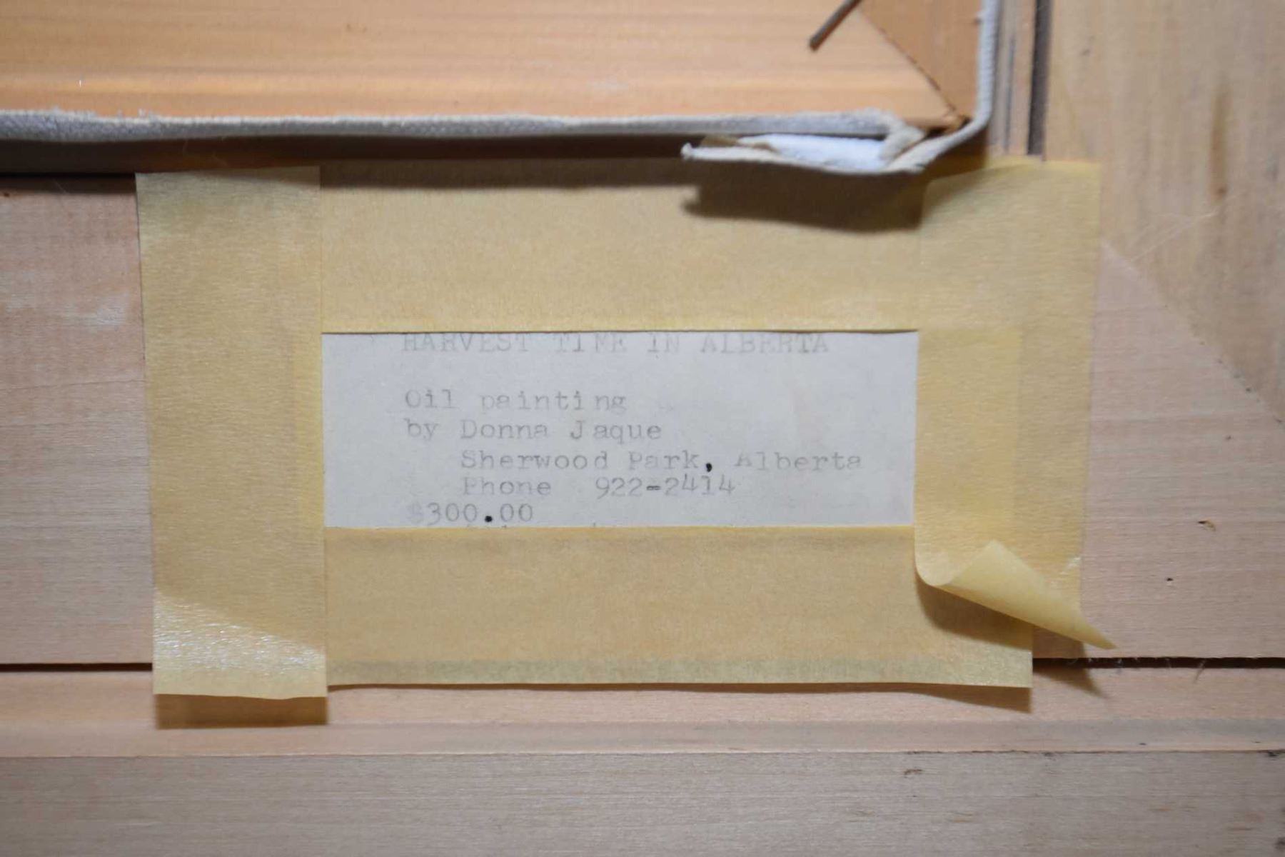 Framed oil on canvas painting "Harvest time in Alberta" signed by artist Donna Jaque, 12" X 18"