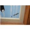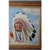 Framed oil on masonite painting of an Indian chief, signed by artist J. Ching 20" X 16"