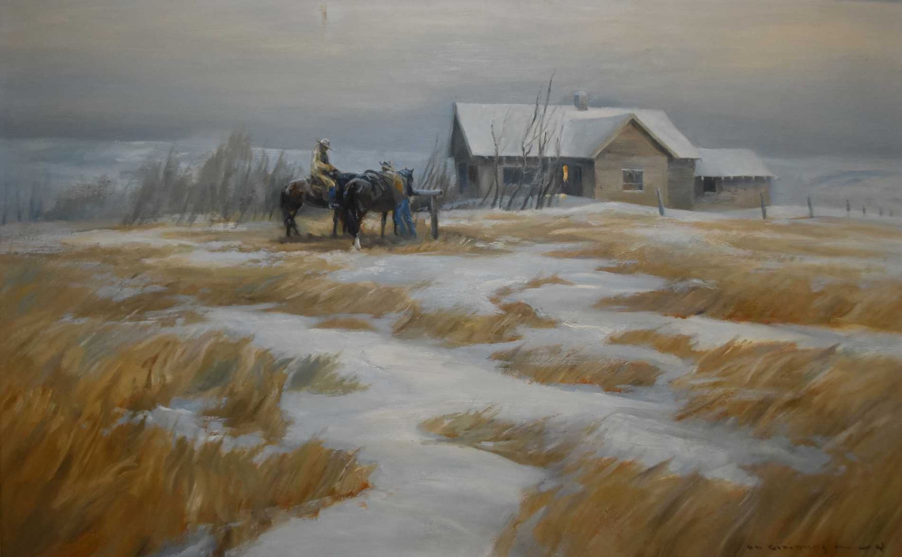 Framed oil on massonite painting titled on verso "Evening Storm, (Alta) signed by artist Orestes Nicholas (Rick) De Grandmaison, 24" X 36"
