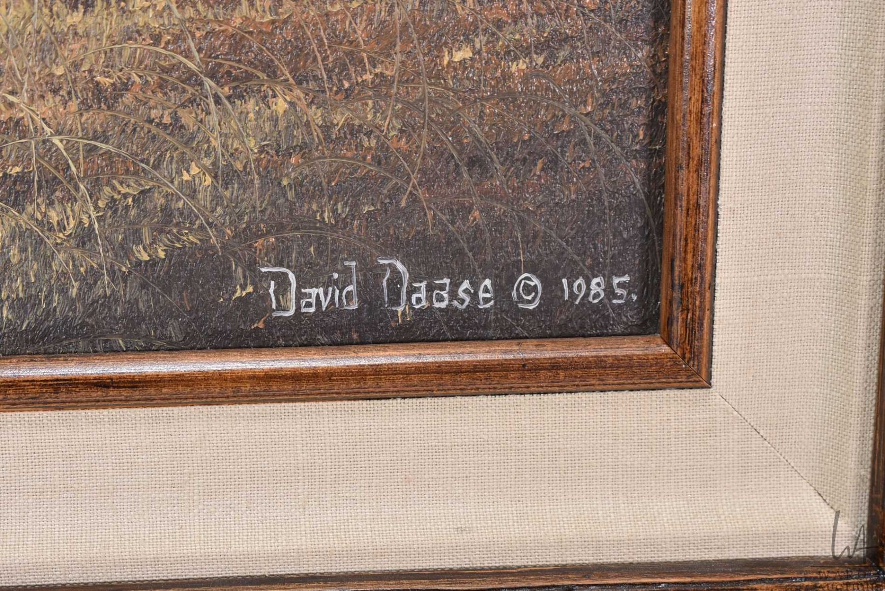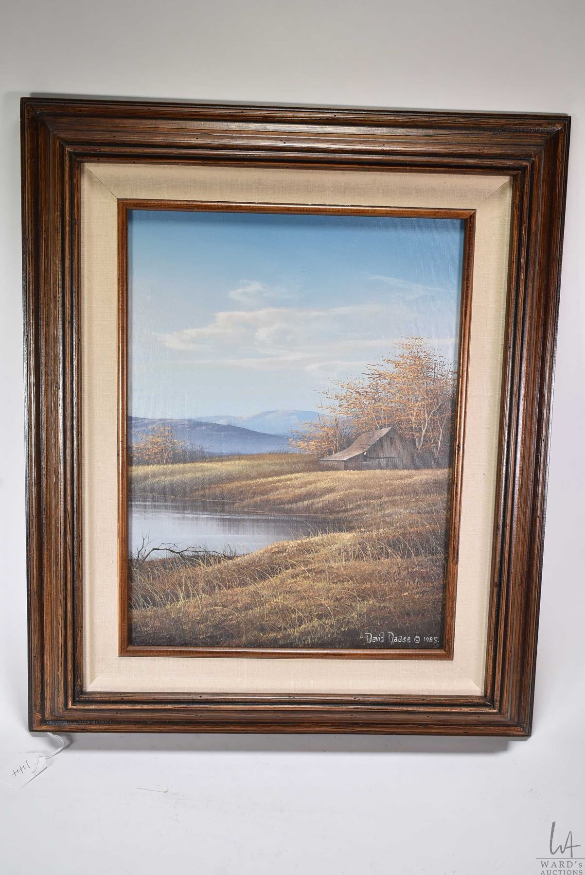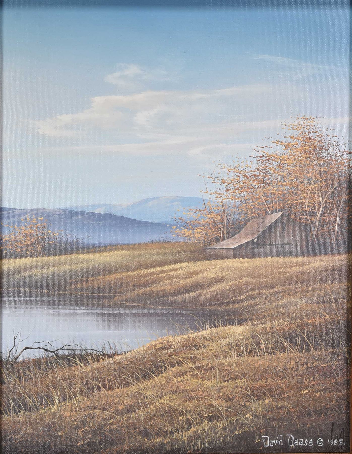 Framed original acrylic on canvas landscape of a fall scene with homestead by artist David Daase 15 1/2" X 11 1/2"