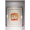 Framed original coloured felt pen drawing, titled Three White Birds, signed in syllabics by artist Pitseolak, 24" X 17". Note: Artwork cannot be insured and is often too large to ship. Local pickup.