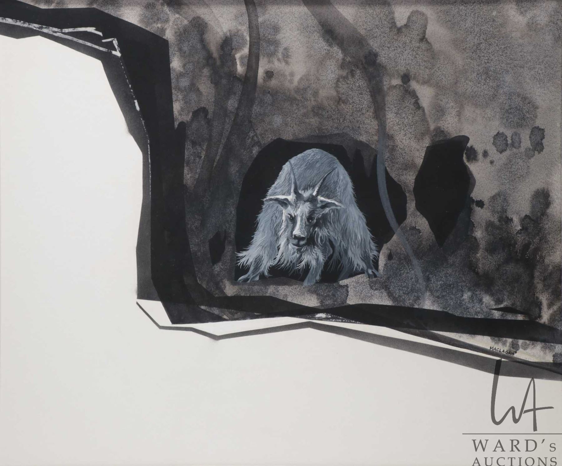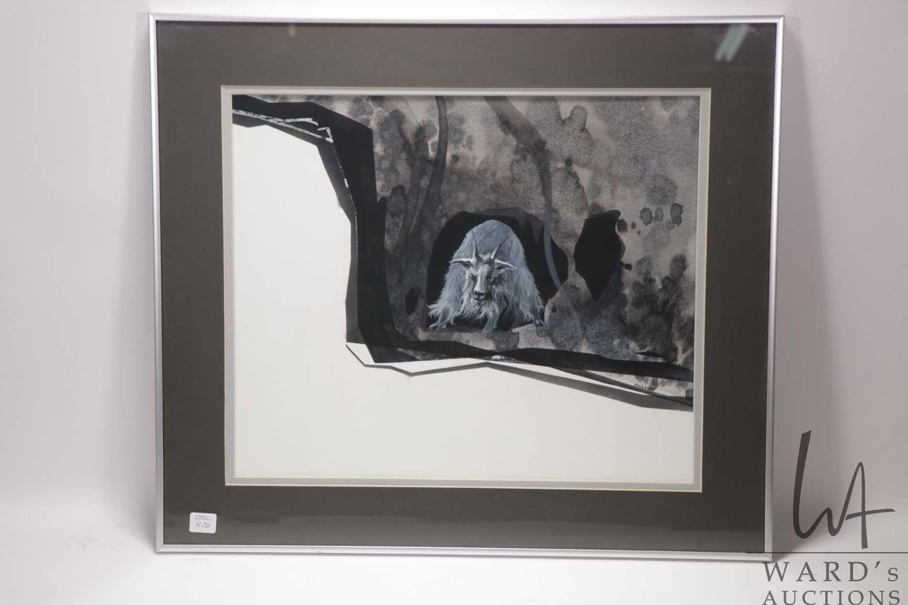 Framed original watercolour/ gouache painting of a mountain goat, signed by artist Maclagan, 14" X 1