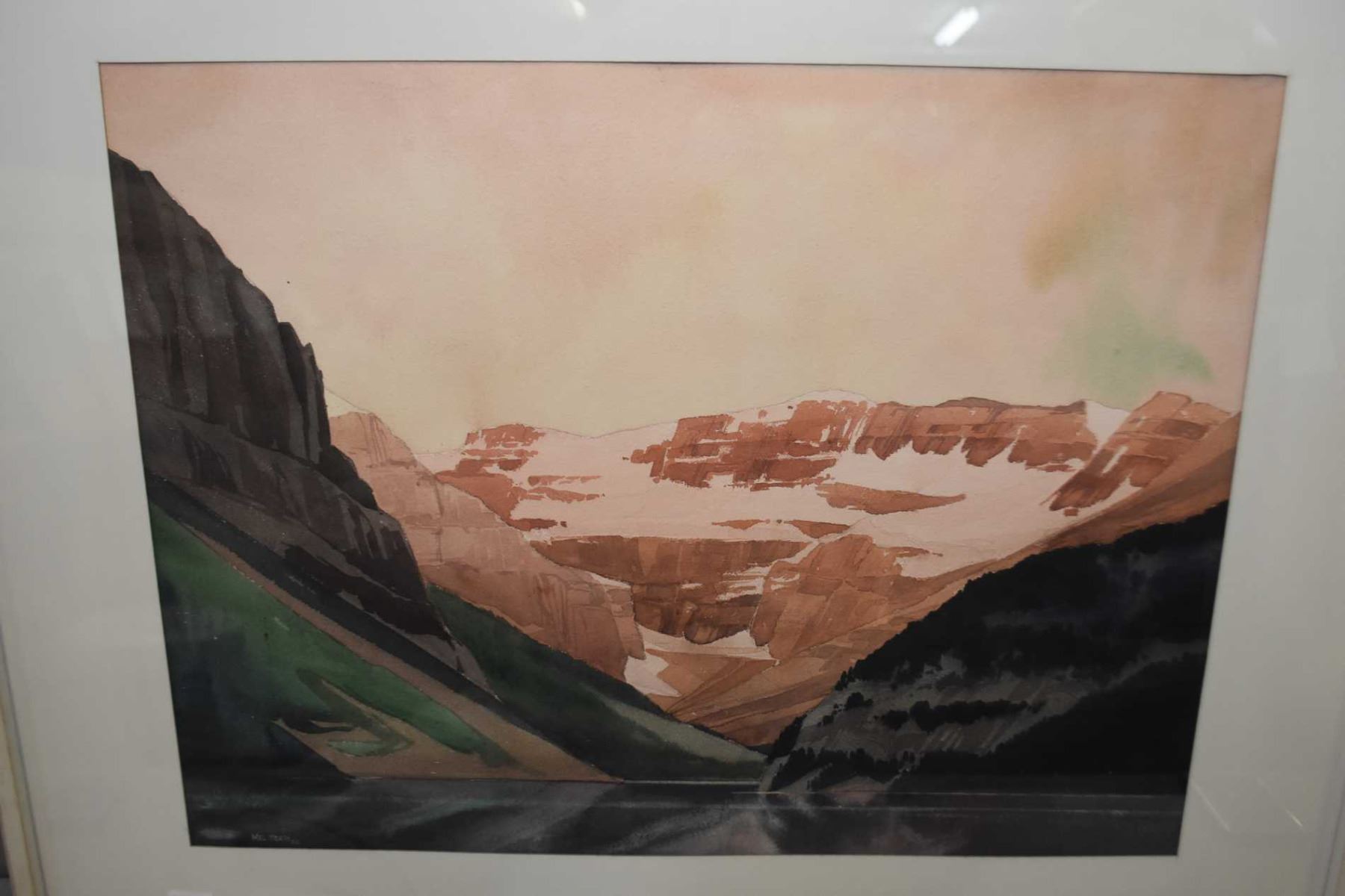 Framed original watercolour painting of a mountain pass signed by artist Mel Heath '68, 16" X 21"