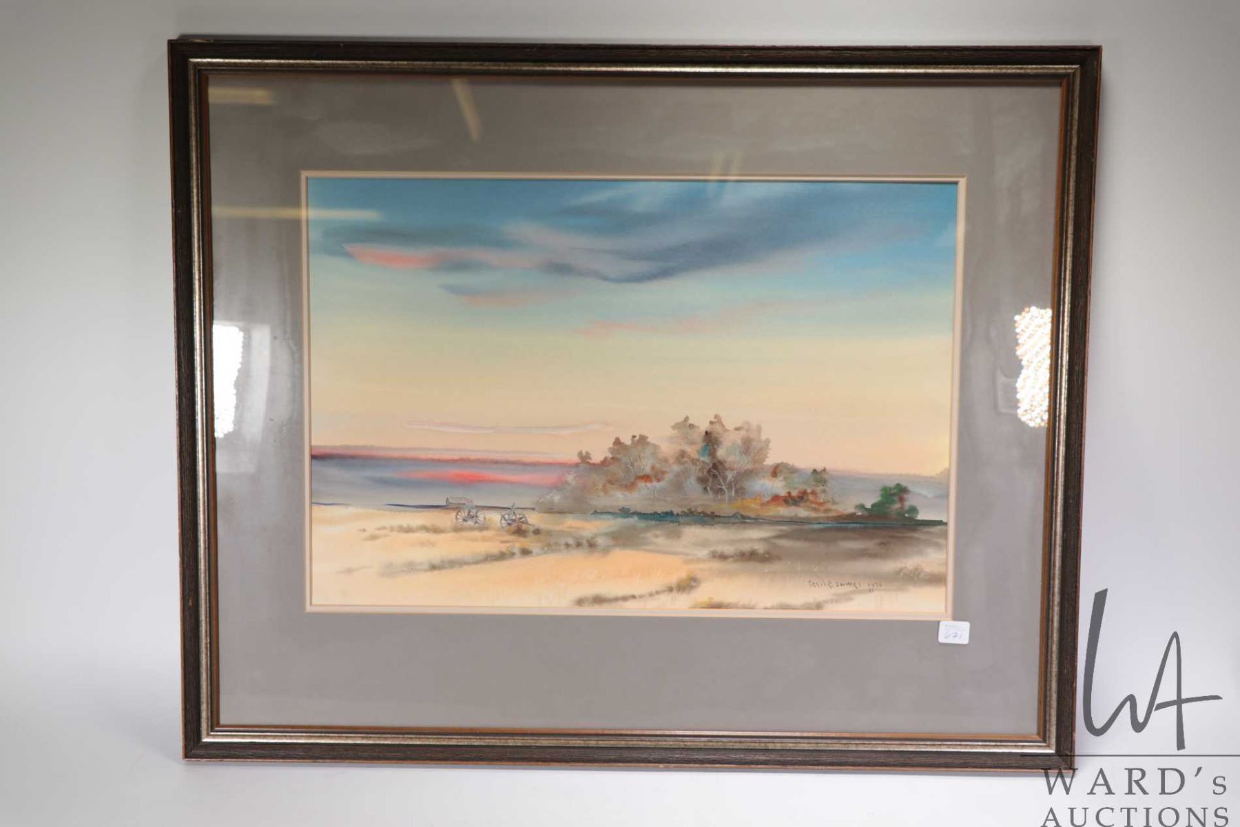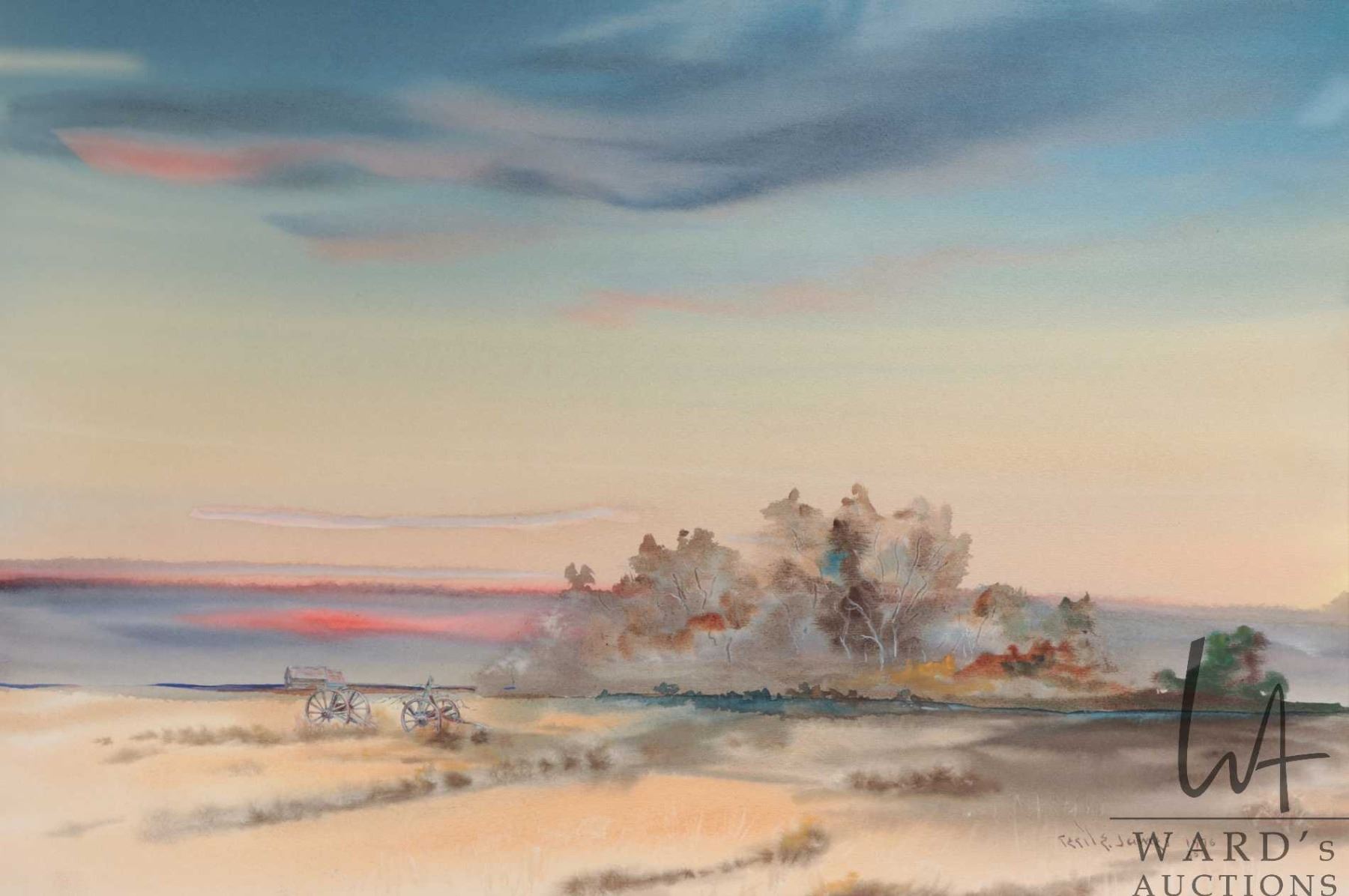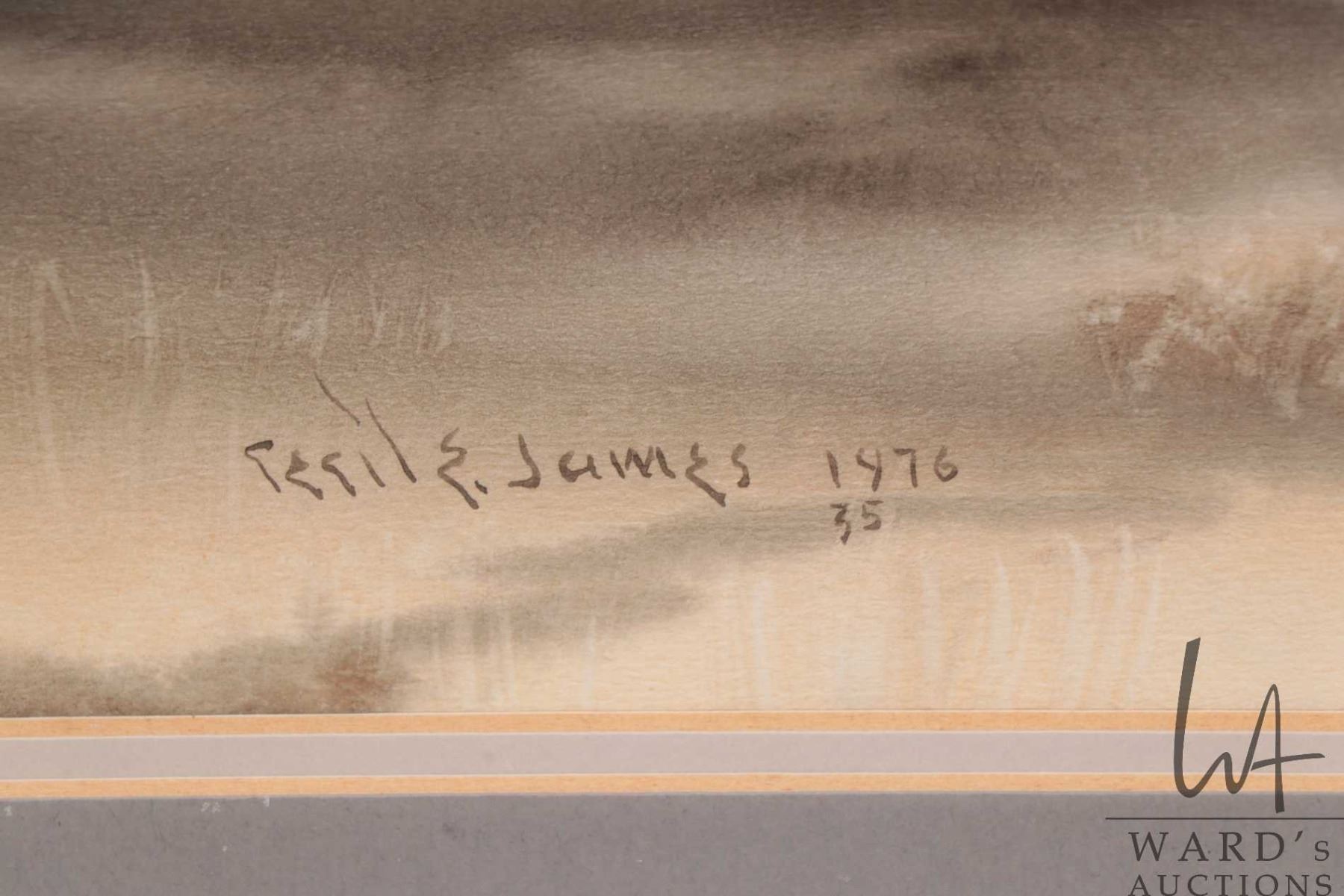 Framed original watercolour painting of an untitled prairie landscape, signed by artist Cecil E. James 1976, 14" X 21". Note: Not available for shipping. Local pickup only