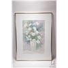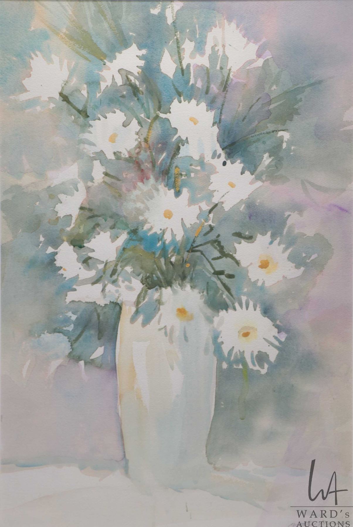 Framed original watercolour painting of flowers in a white vase by artist G. Moris, 20" X 13"69. Note: Artwork cannot be insured and is often too large to ship. Local pickup.