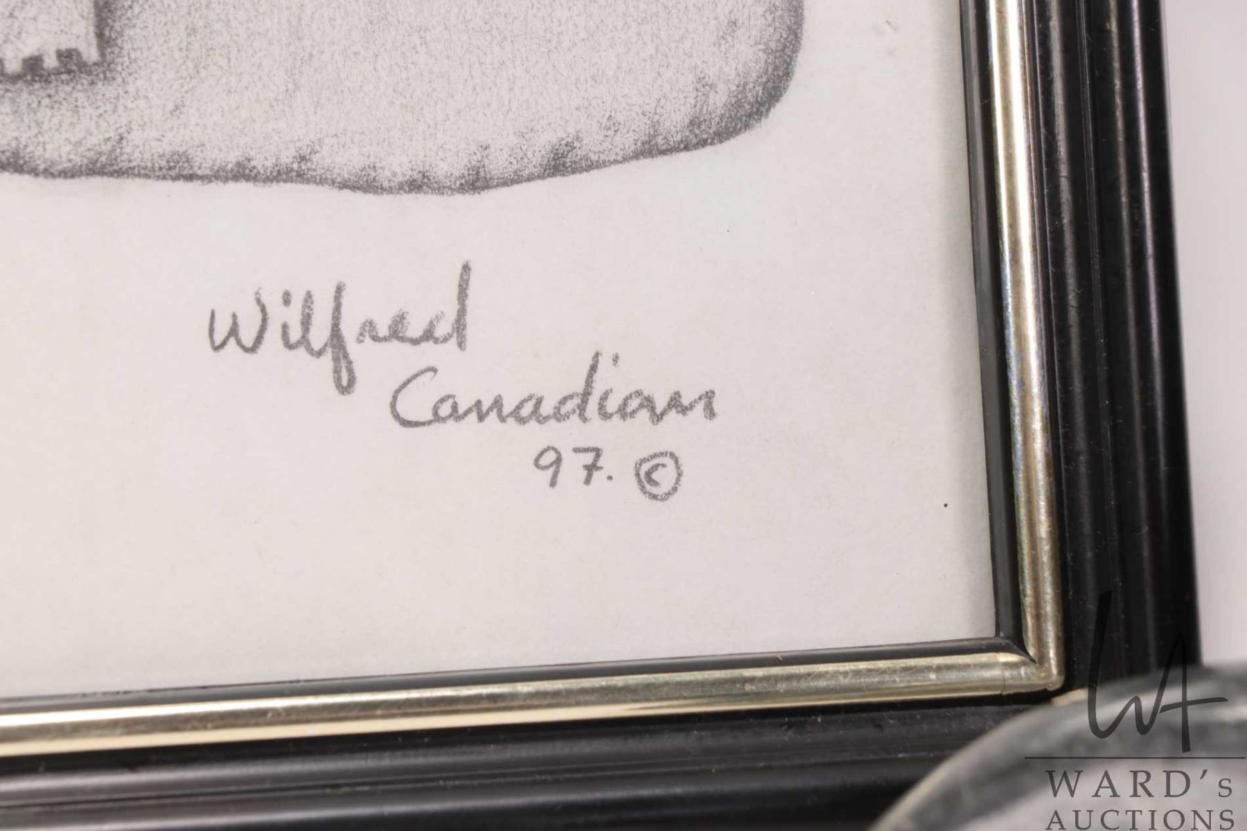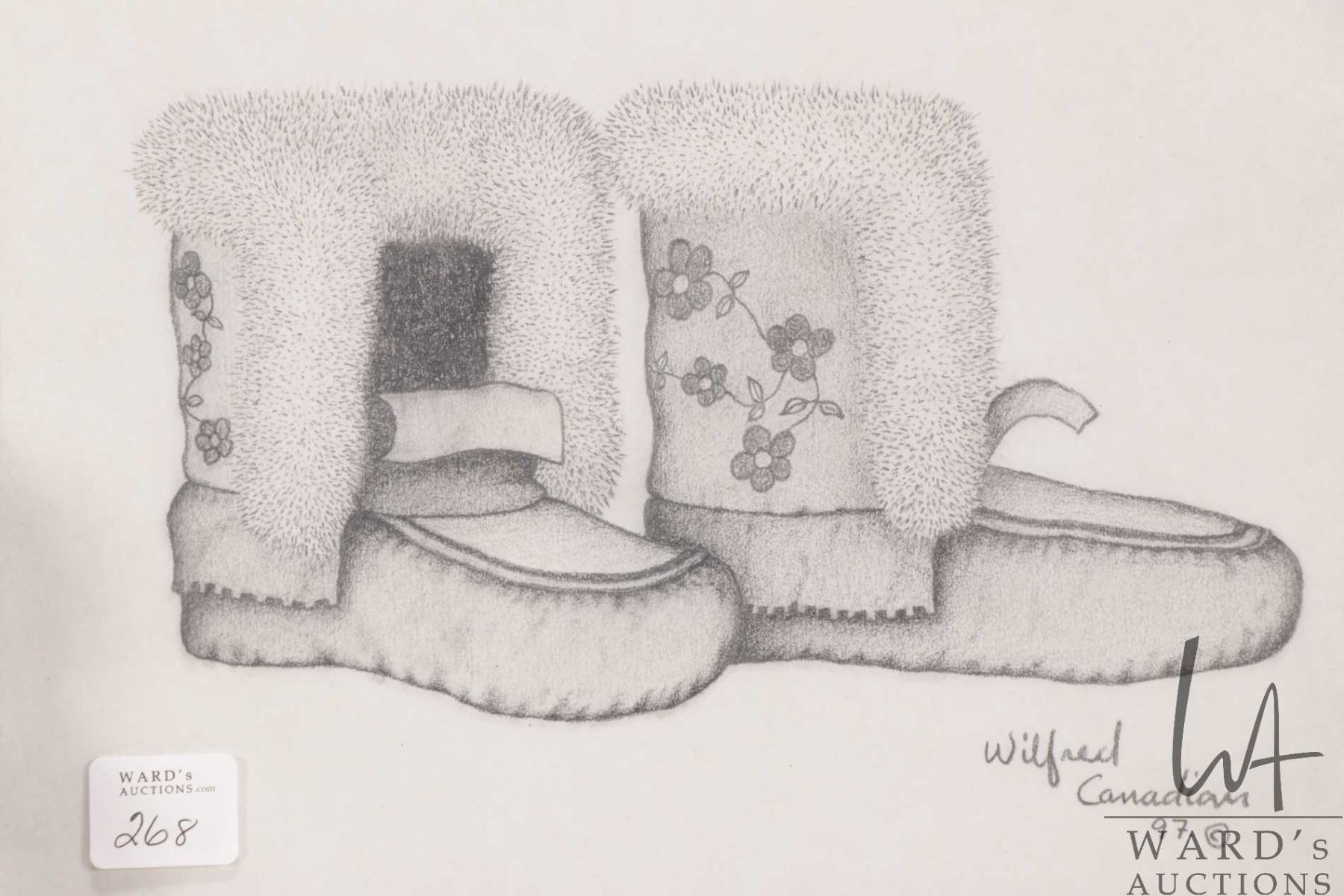 Framed pencil drawing of a pair of mukluk, signed by artist Wilfred Canadian 7 1/2" X 9 1/2" and two