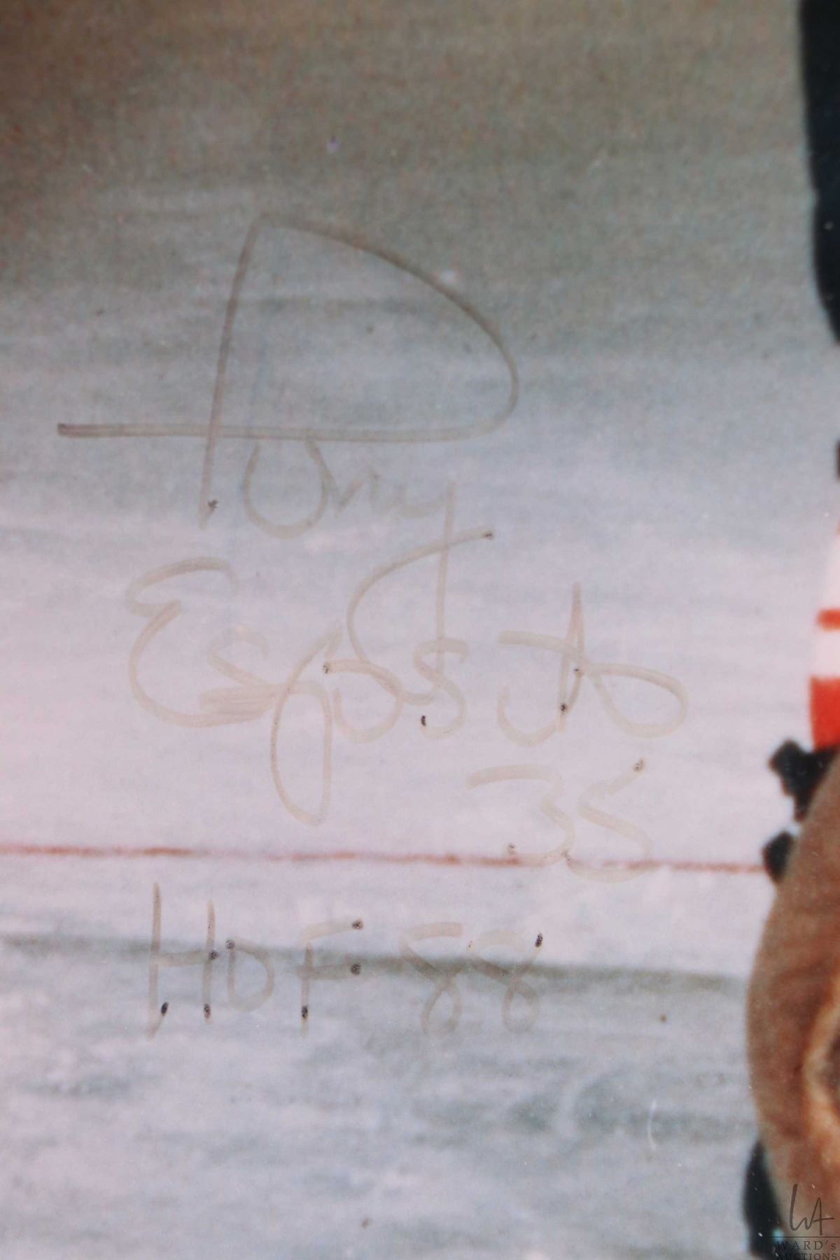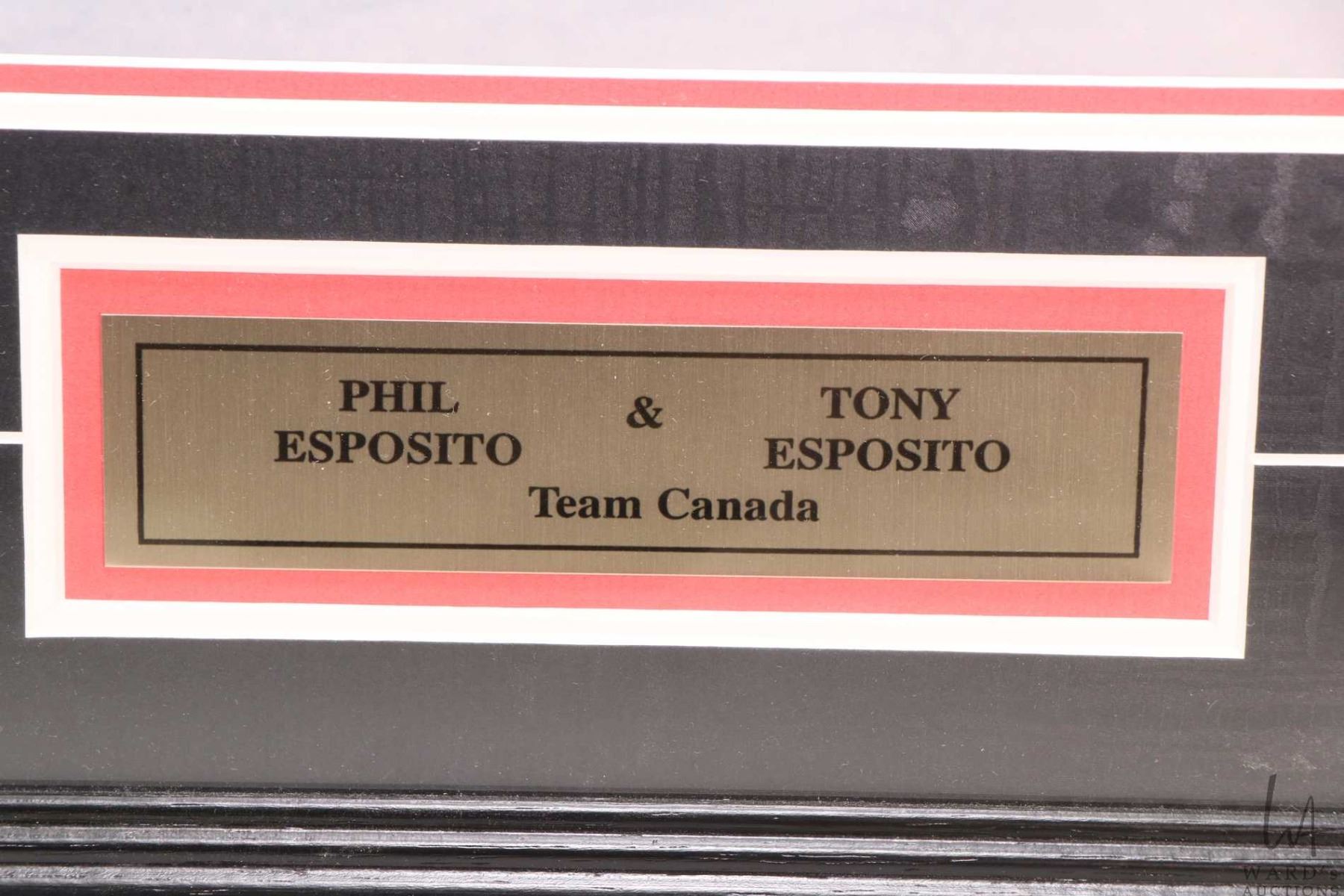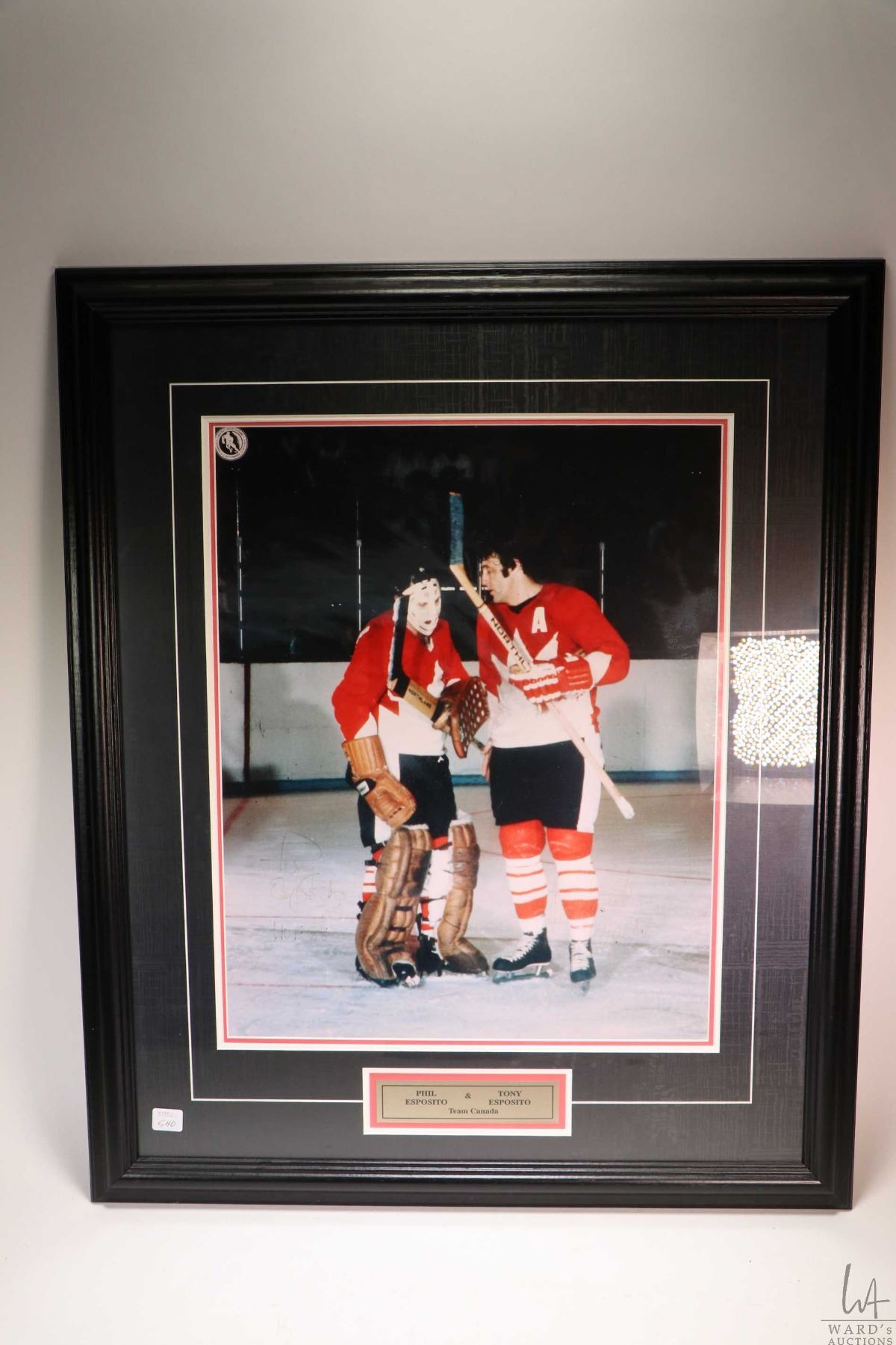 Framed photograph of Phil and Tony Esposito, faintly hand signed by both while playing for Team Canada 1988, complete with COA. Note: Not available for shipping. Local pickup only