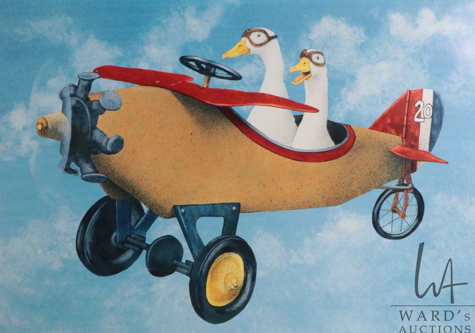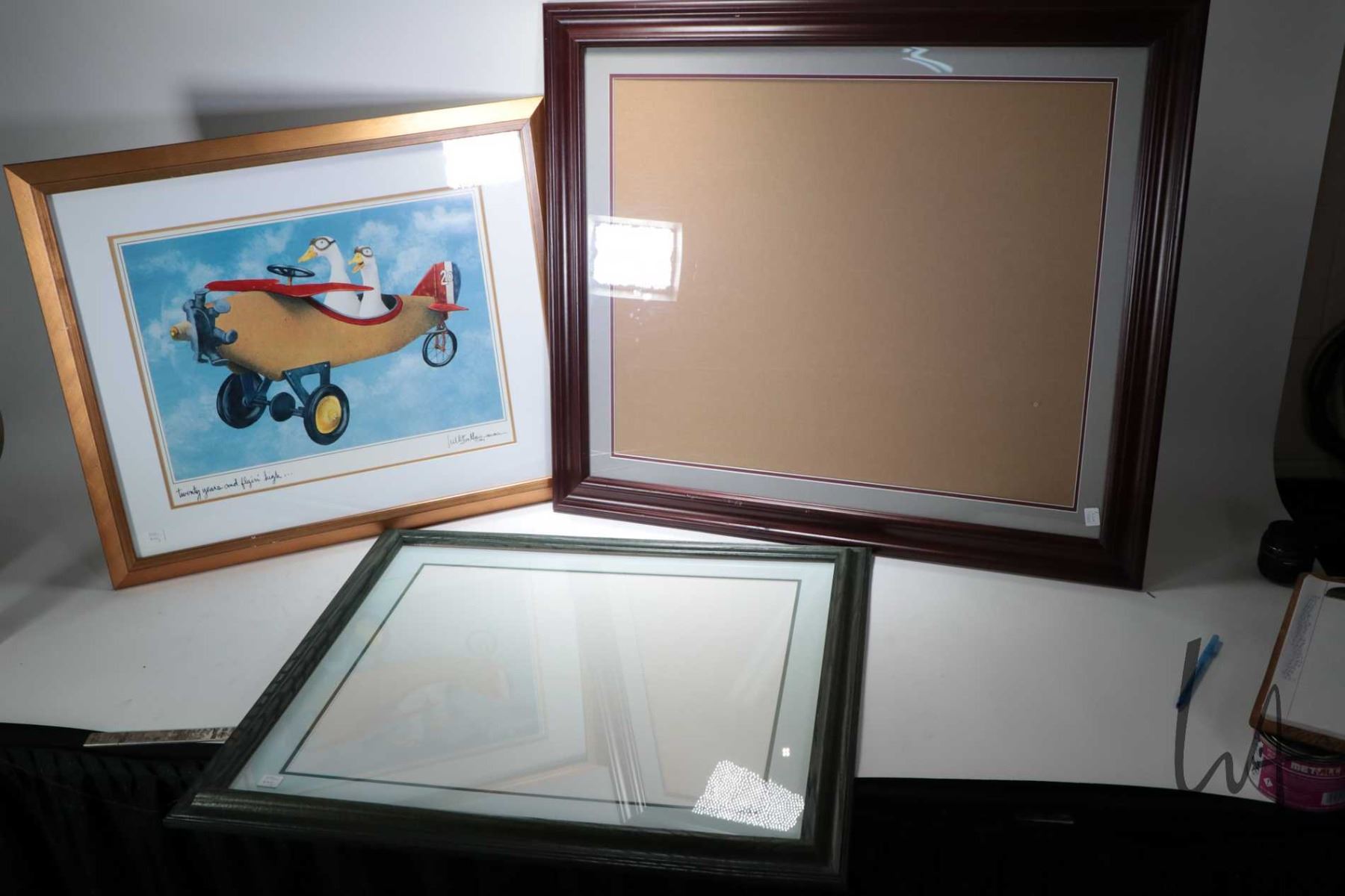Framed print "Twenty Years and Flying HIgh" by artist Will Bullas, 25" X 30" overall dimensions including frame, plus two open frames with mats