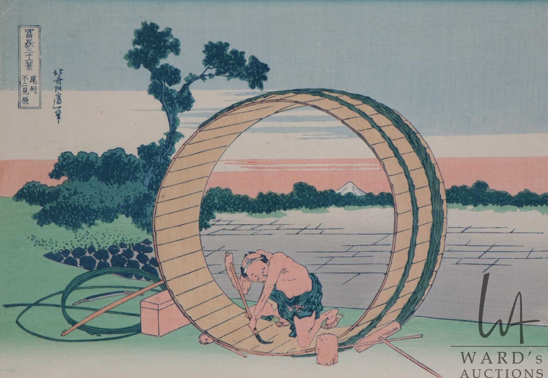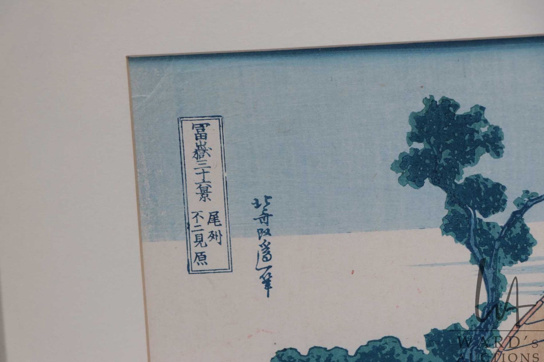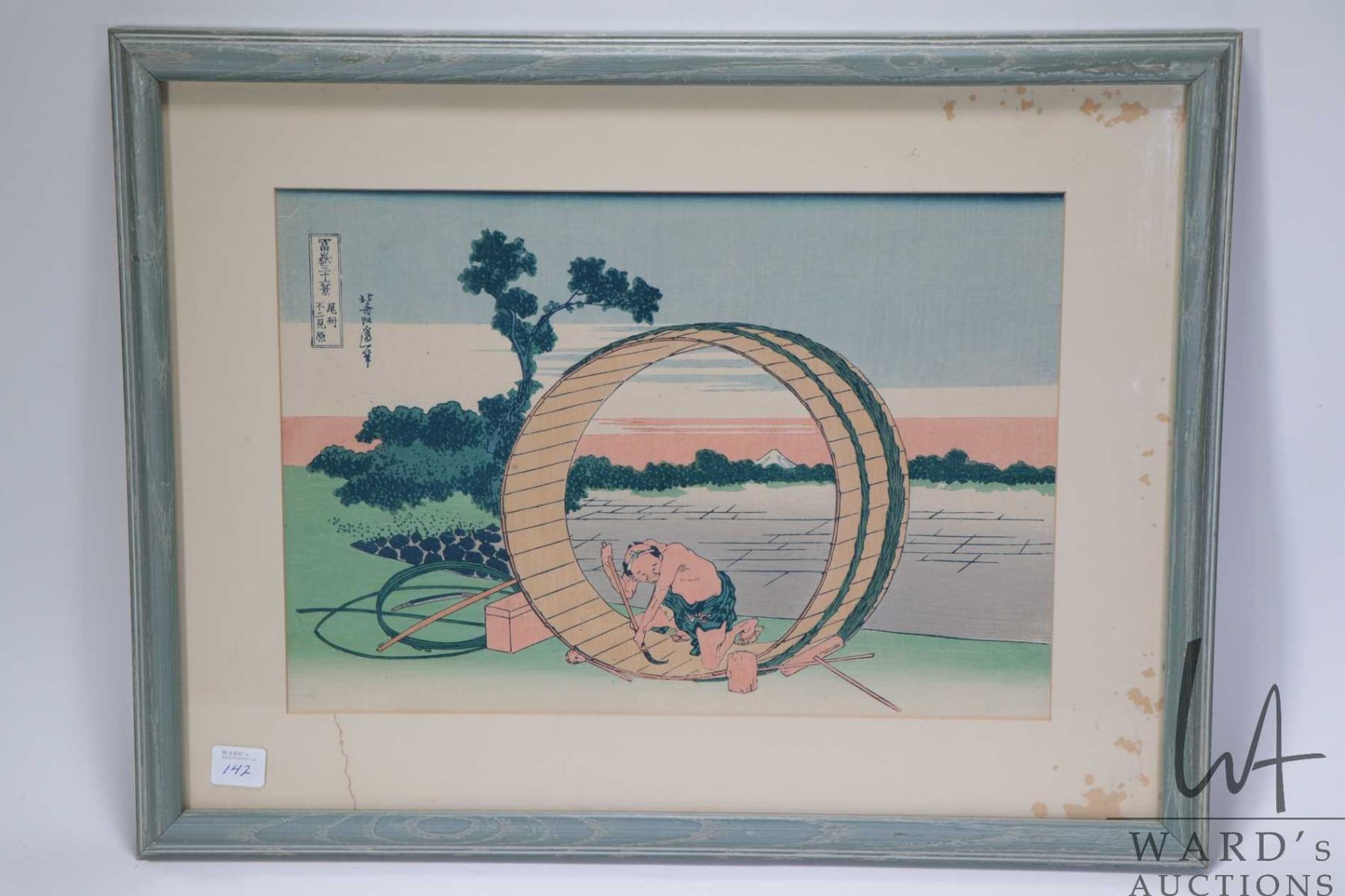 Framed print taken from a Japanese wood block from the 36 views of Mount Fuji series by artist Katsusika Hokusai 10" X 14"