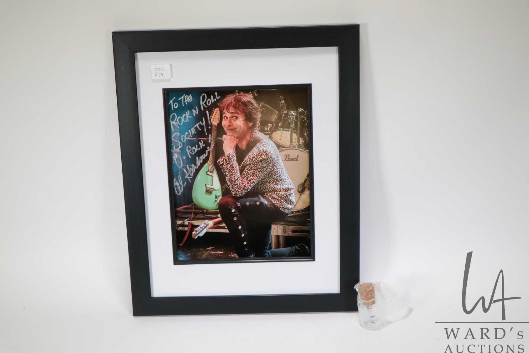 Framed promotional photo signed by lead singer of Prism Al Harlow and a USB copy of Derek Sweet comedy routine entitled "Miserably Yours". These items are being on behalf of the Support fund for Adults with Disabilities, and will be sold sellers commission free with all monies including applicable buyers premium will be forwarded to the registered charity
