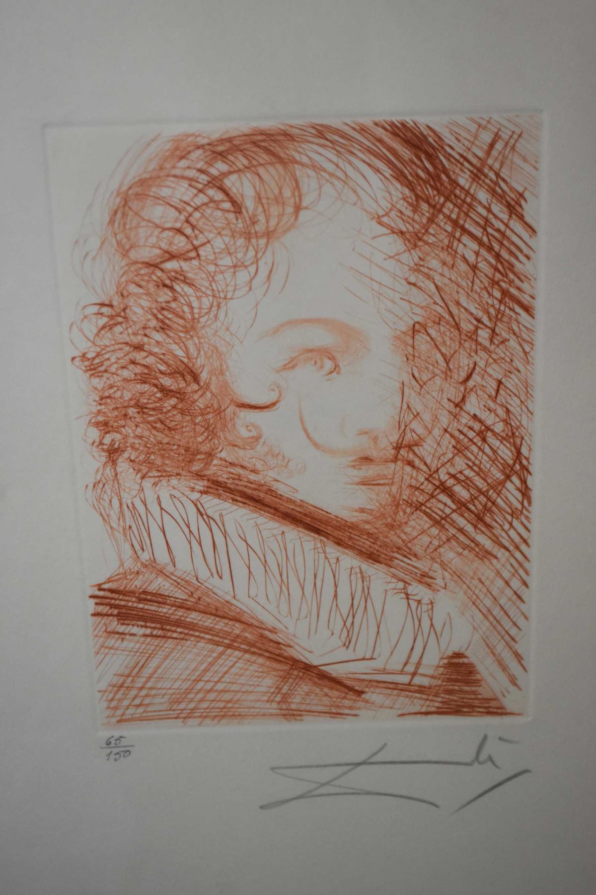 Framed sanguine etching "self-portrait" pencil signed by artist Salvador Dali, 65/150. 14" X 10"